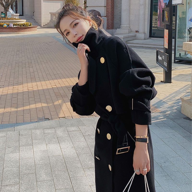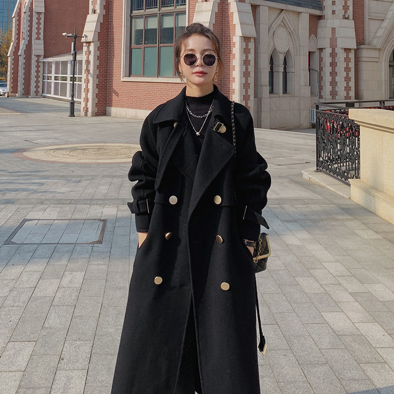 Black Coat Women’s Mid-length Over-the-knee 2024 Autumn and Winter New Thick Elegant Popular Woolen Coat for Petite All-match