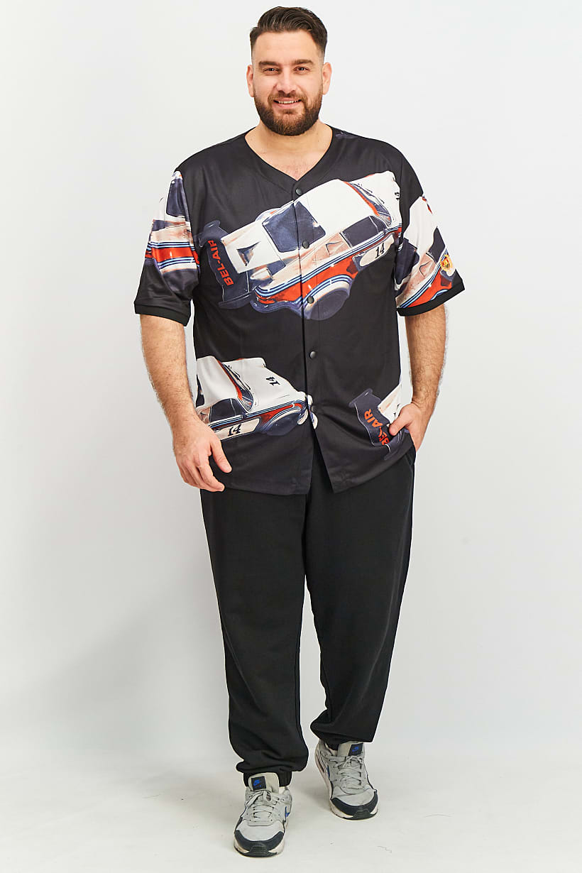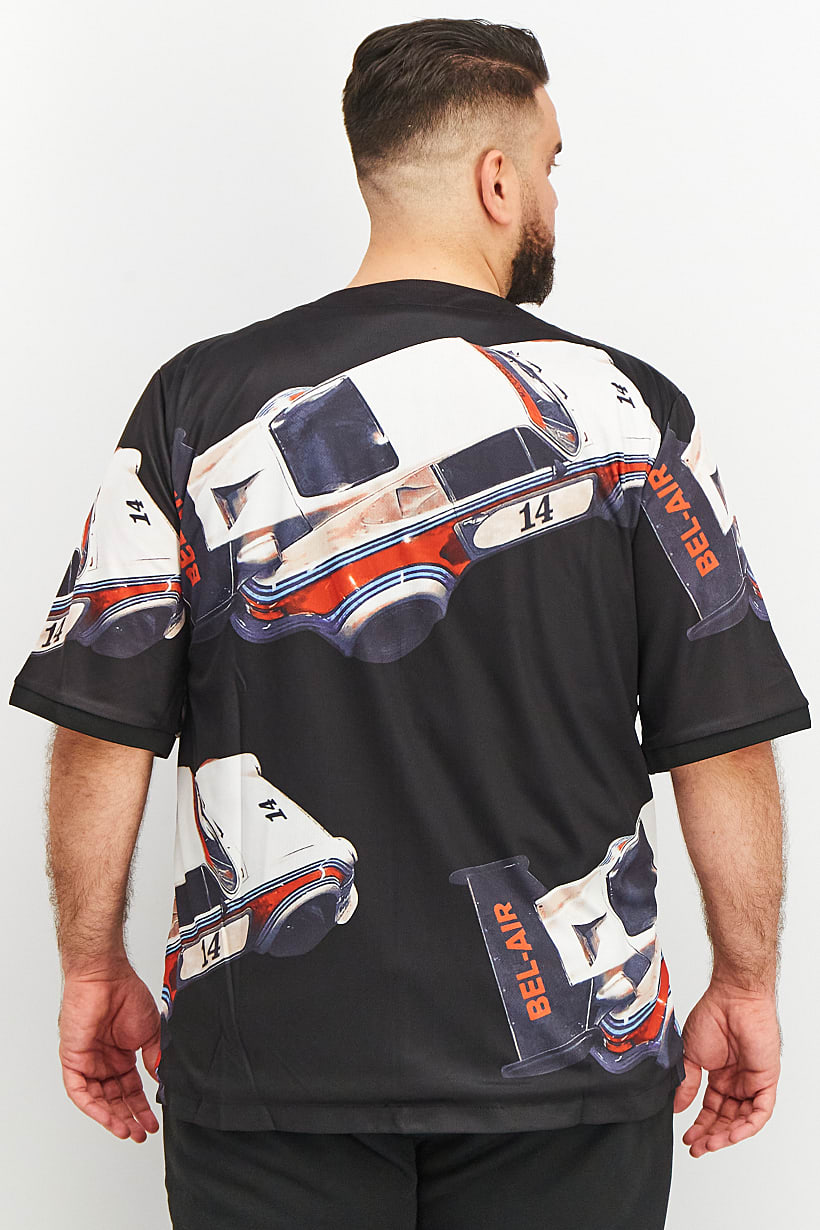 Black Combo Allover Print Men’s Short Sleeve Sportswear Top.