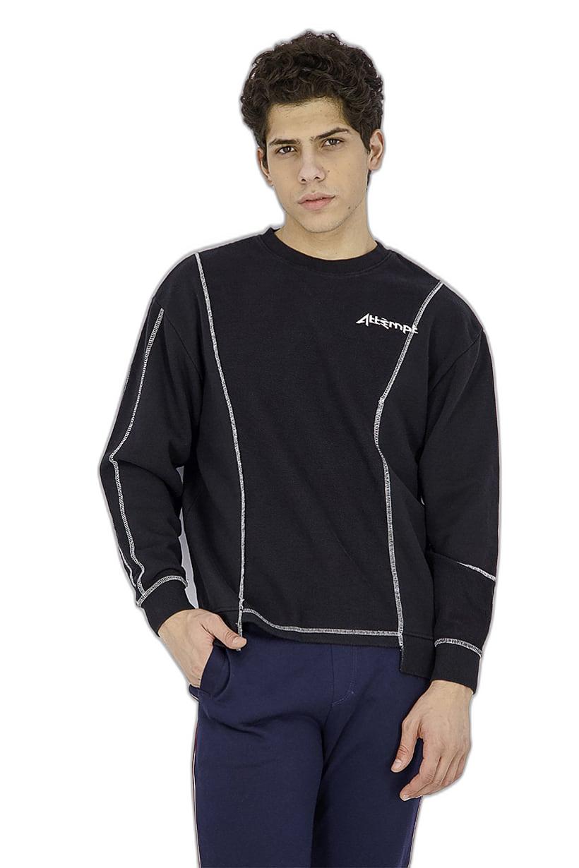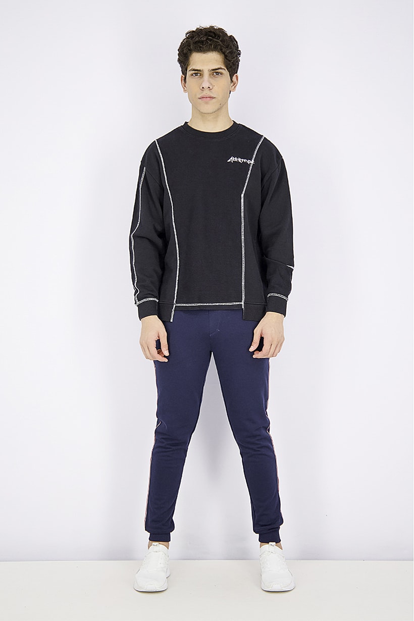 Men Clothing, Sportswear, men crew neck embroidered sweater black combo