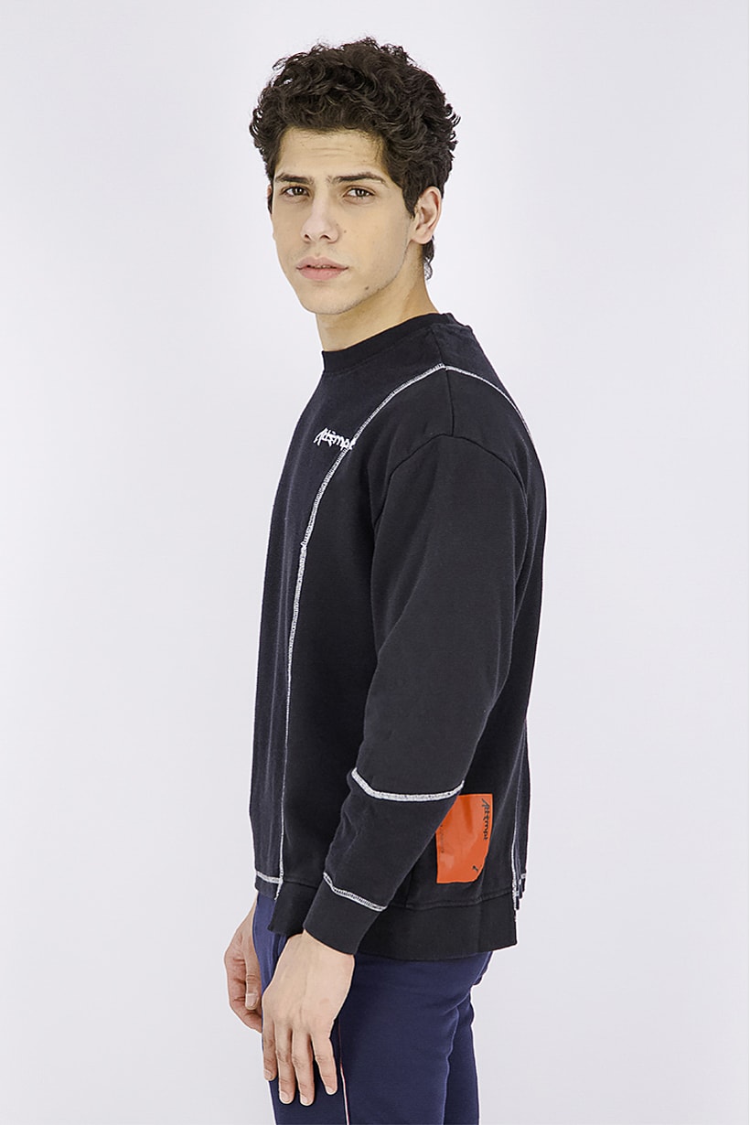 Black Combo Embroidered Men’s Crew Neck Sweater.