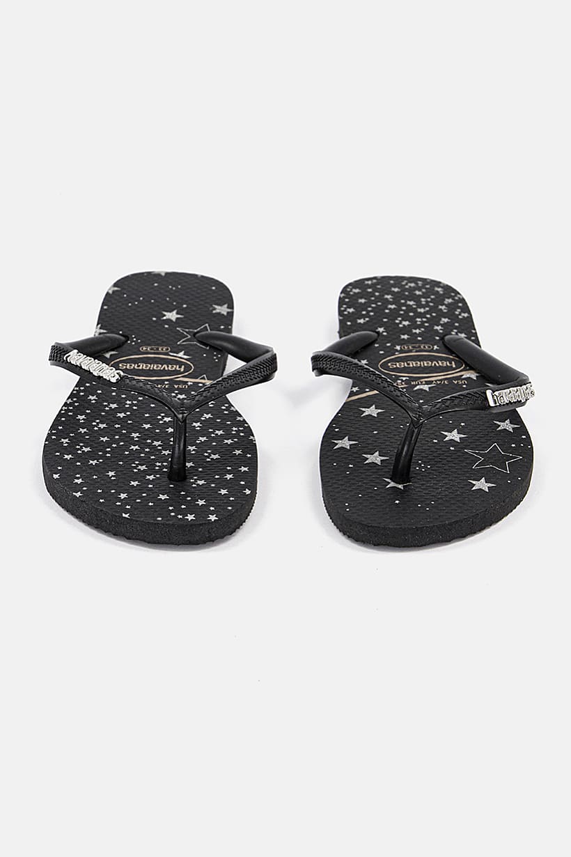 This product is perfect for girls and features a slip-on shoe closure with an open toe style. The rubber sole provides durability and comfort. There are no specific character types associated with this product. Please note that the product color may vary slightly due to photographic lighting or monitor settings. The allover print adds a casual touch to this black shoe made of rubber material. It is suitable for casual occasions.