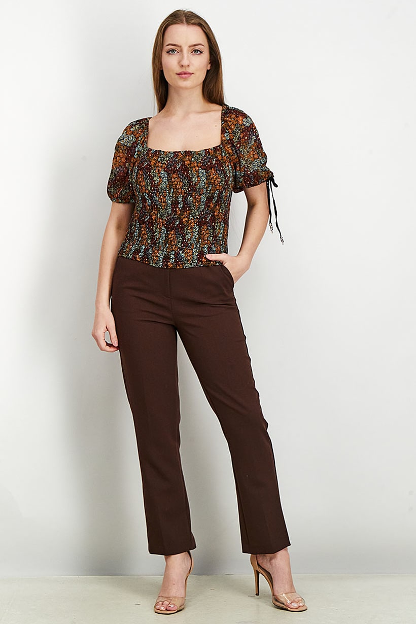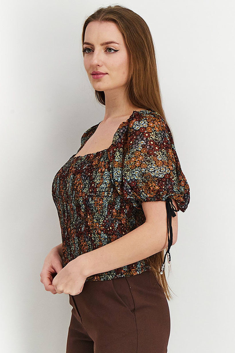 Women Clothing, Tops & Tees, women square neck puff sleeves floral crop top black combo