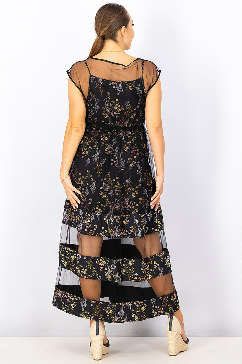 Black Combo Floral Print Midi Dress for Women’s Casual Wear.
