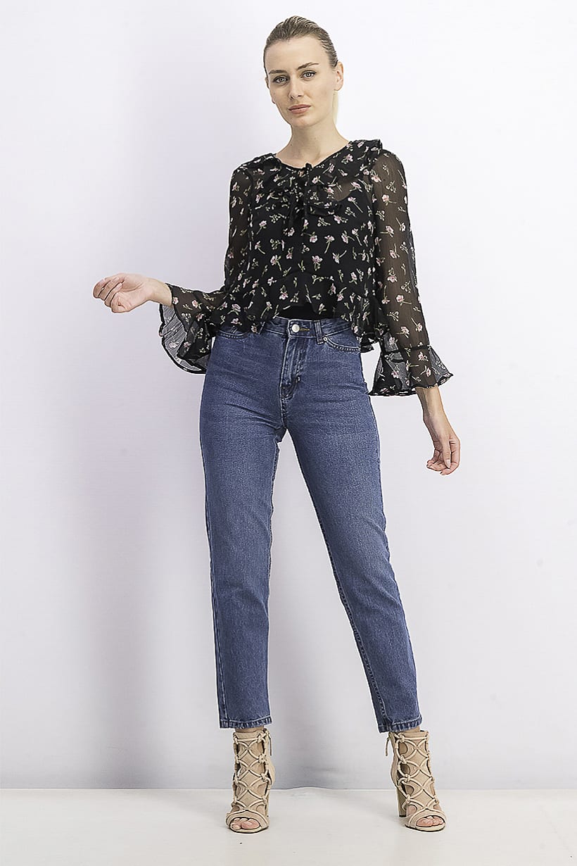 | descriptionOriginal | Types of Sleeve : Longsleeve, Top Style : Blouse, Disclaimer : Inner garment is not included., Ideal For : Women, Occasion : Casual, Fabrics : 100% Polyester, Care : Machine washable, Pattern & Print : Floral Print, Types of Hem : Straight hem, Types of Closures : Pullover, Types of Neckline & Collar : Tie neckline, Color Family : Black, |