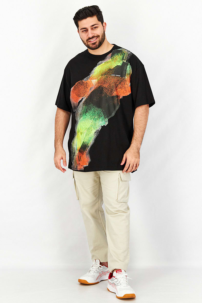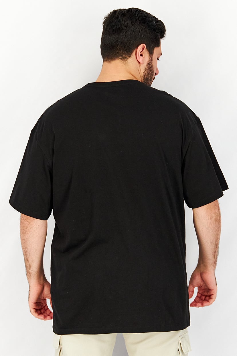 Care : Machine washable, Fit : Loose fit, Ideal For : Men, Size shown : International, Sleeve Length : Short Sleeve, T-Shirt Style : Crew Neck, Types of Hem : Straight hem, Types of Neckline & Collar : Crew neckline, Types of Sleeve : Short sleeve, Disclaimer : Product color may slightly vary due to photographic lighting sources or your monitor settings., Fabrics : 100% Cotton, Occasion : Casual, Pattern & Print : Graphic print, Types of Closures : Pullover, Color Family : Black,
