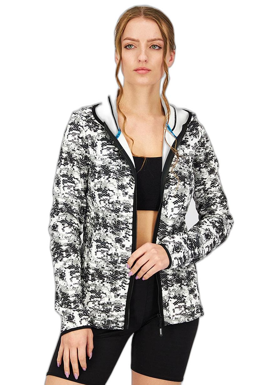 Women Clothing, Sportswear, women long sleeve allover print hooded jacket black combo