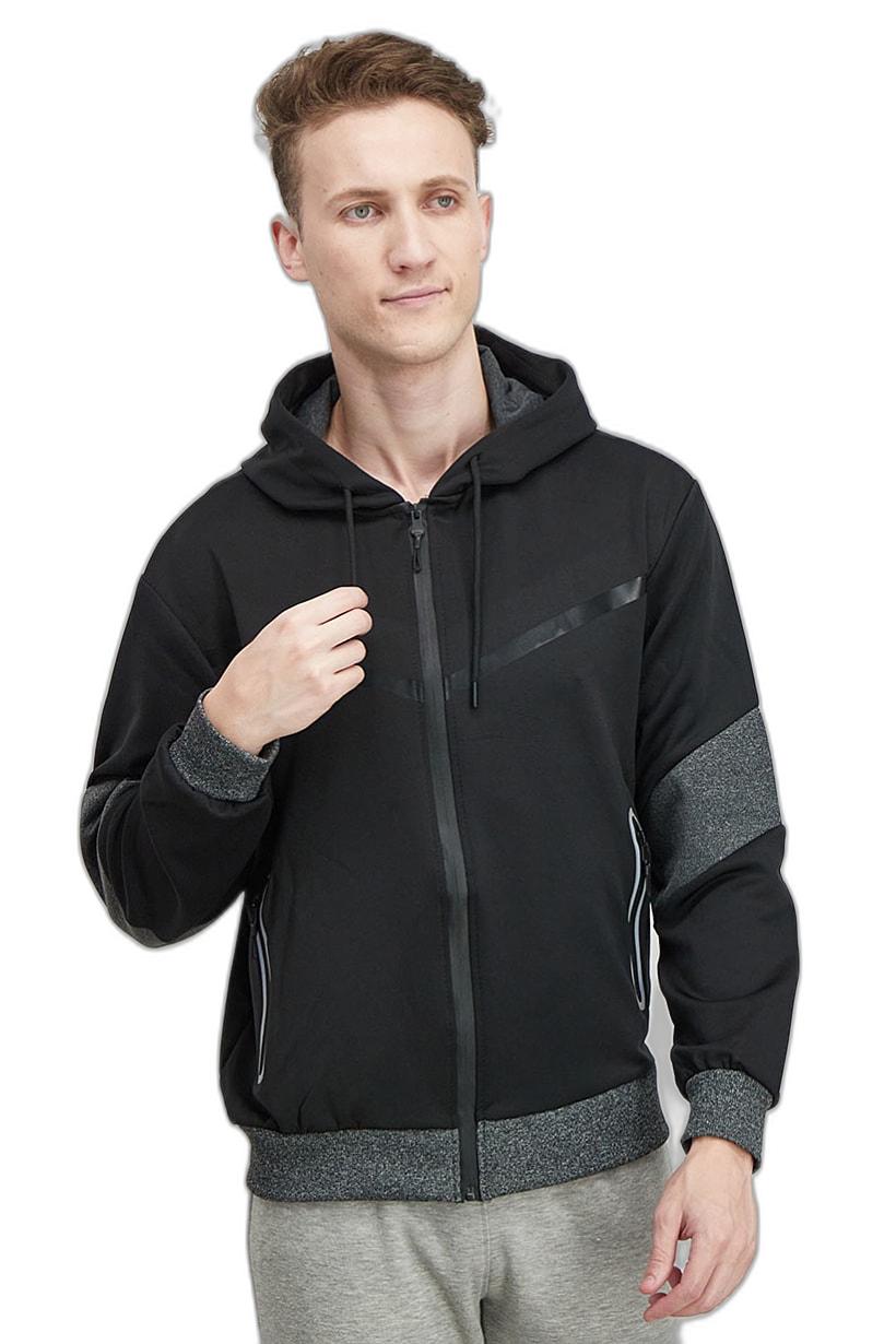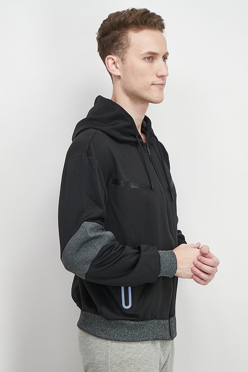 Black Combo Hooded Sweatshirt for Men’s Sports Wear with Drawstring.