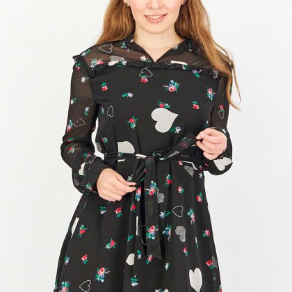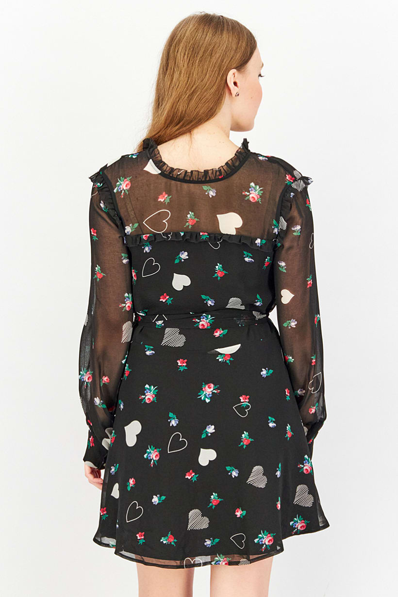 | sub_Categories | Women Clothing, Dresses, women allover print long sleeve mini dress black combo |