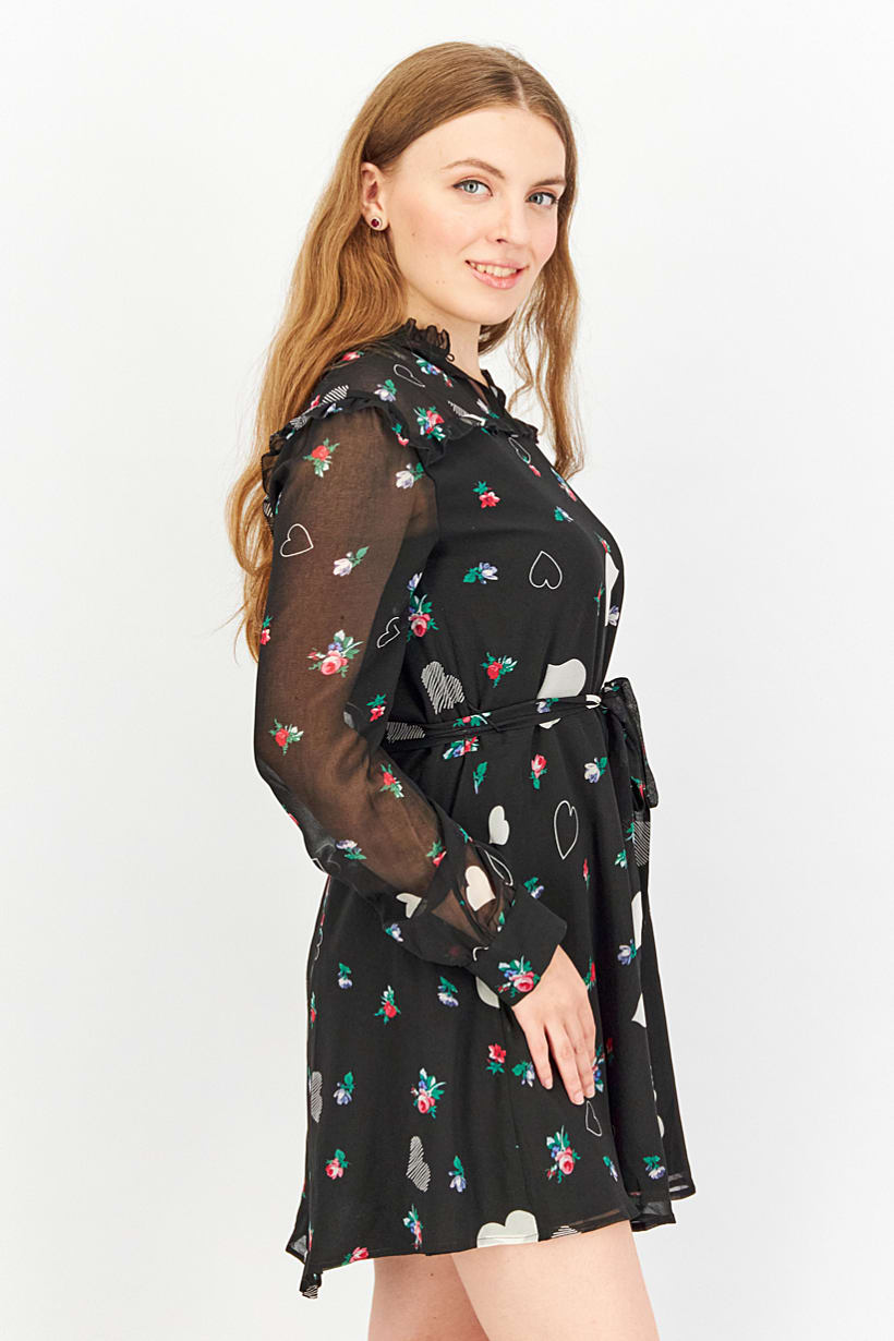 | nameOriginal | Women Allover Print Long Sleeve Mini Dress, Black Combo |