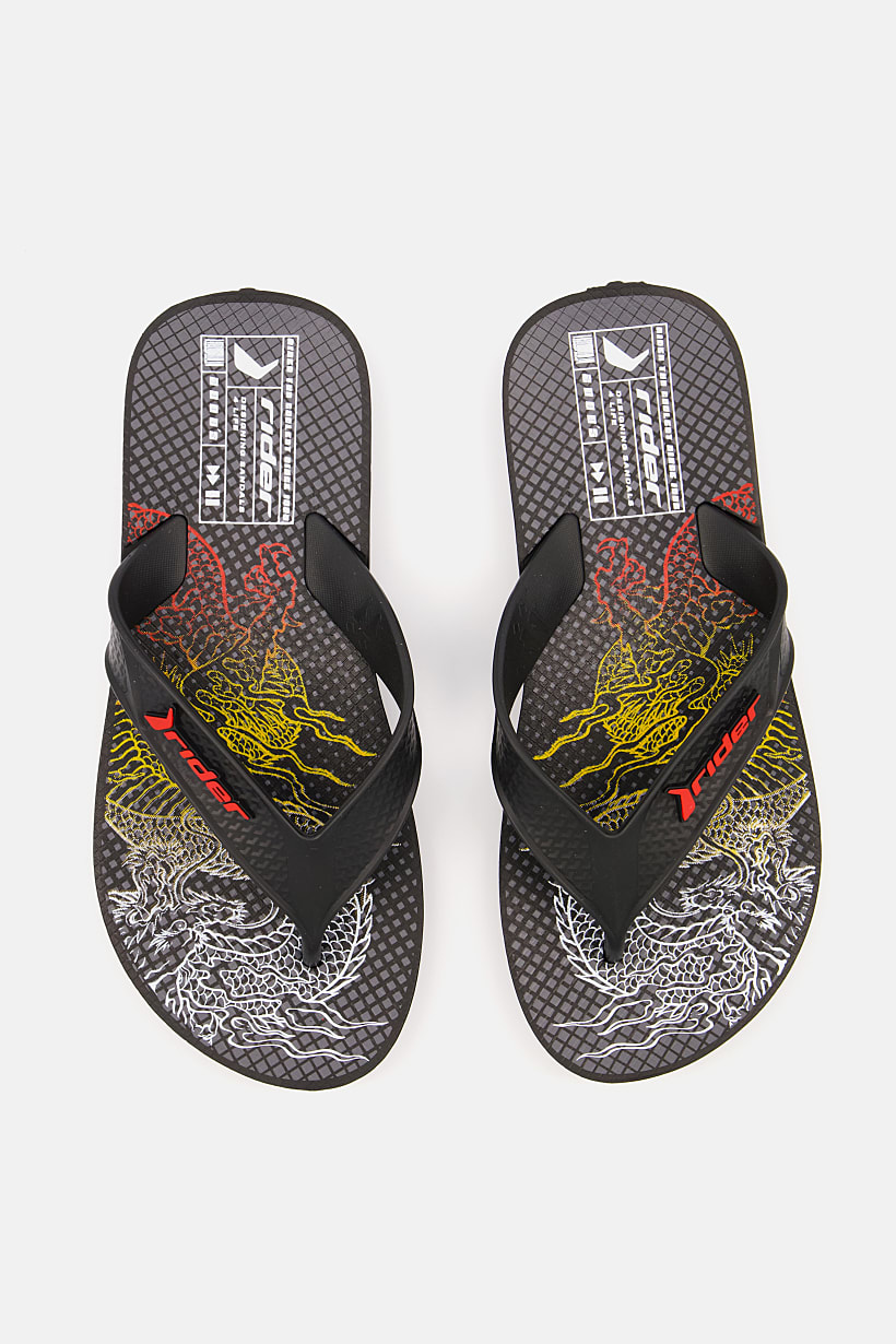 | sub_Categories | Shoes, Slides & Slippers, men graphic print flip flop slipper black combo |