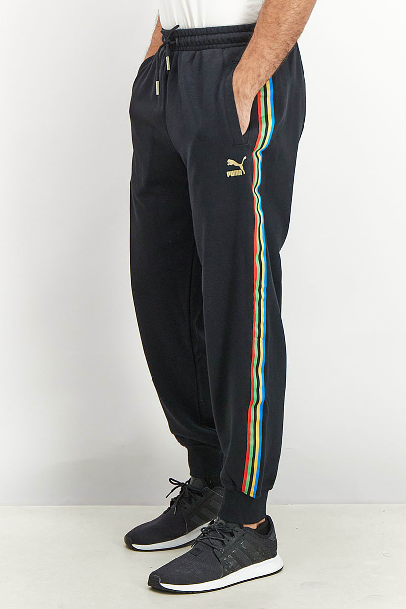 This product is easy to care for as it is machine washable. It has a regular fit and is available in US sizes. The fabric is made of 100% cotton and is light in thickness, making it suitable for training. The track pants feature a drawstring closure at the bottom and a pull-on closure. The stripe pattern and print add a stylish touch to the black color family. These track pants are perfect for any sportswear collection.