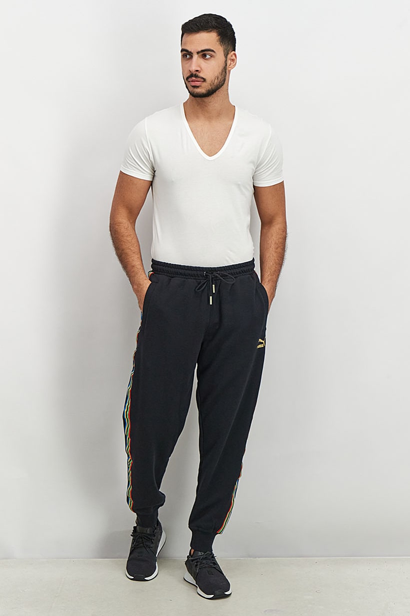 Care : Machine washable, Fit : Regular fit, Size shown : US, Thickness : Light, Type of Sport : Training, Bottom Closure : Drawstring, Fabrics : 100% Cotton, Pattern & Print : Stripe, Sportswear Type : Track Pants, Types of Closures : Pull on, Color Family : Black,