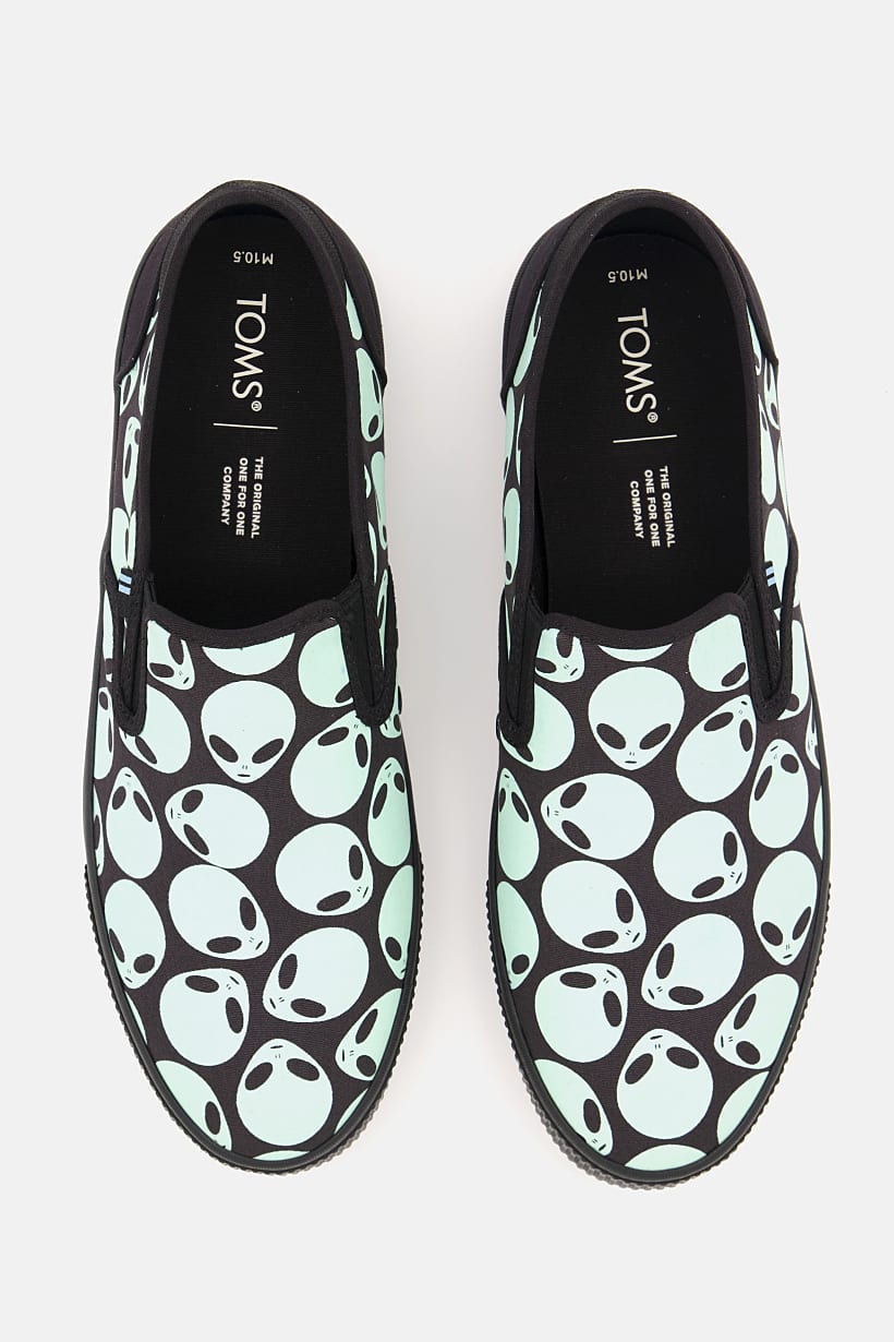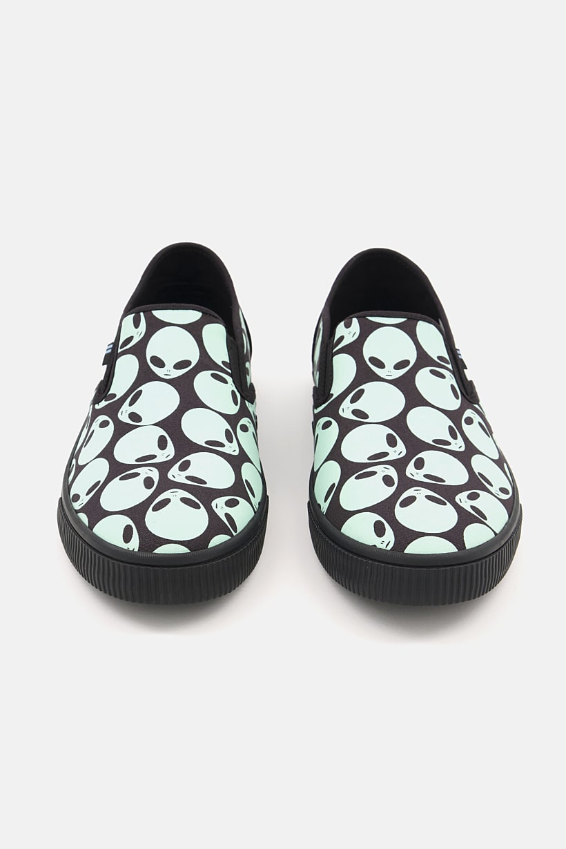 | nameOriginal | Men Baja Glow In The Dark Alien Print Slip On Casual Shoes, Black Combo |