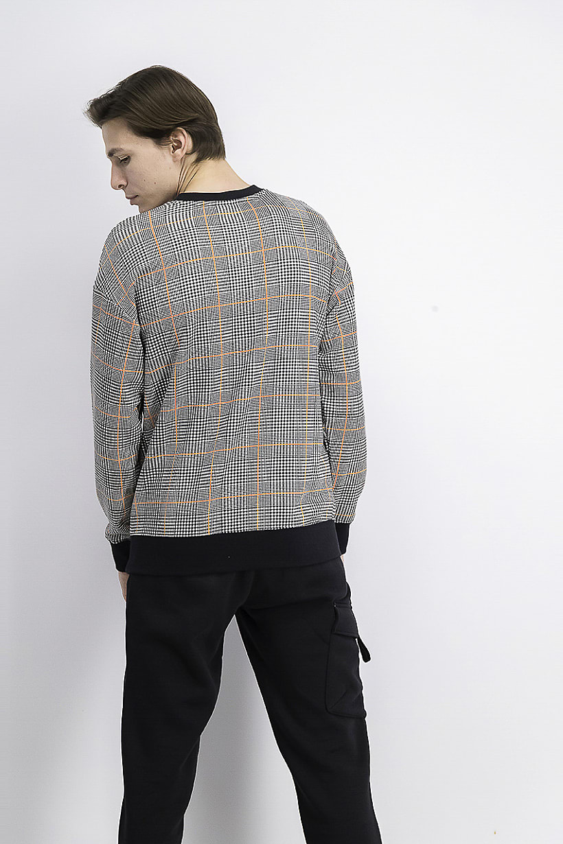 Please note that the color of the product may differ slightly due to lighting or monitor settings. This product is machine washable for easy care. It features a checkered pattern and is a pullover style with long sleeves. The fabric is made up of 32% polyester and 68% cotton, and the color family is black. The thickness is medium, and the fit is sportswear style. This pullover is suitable for outdoor sports and occasions.