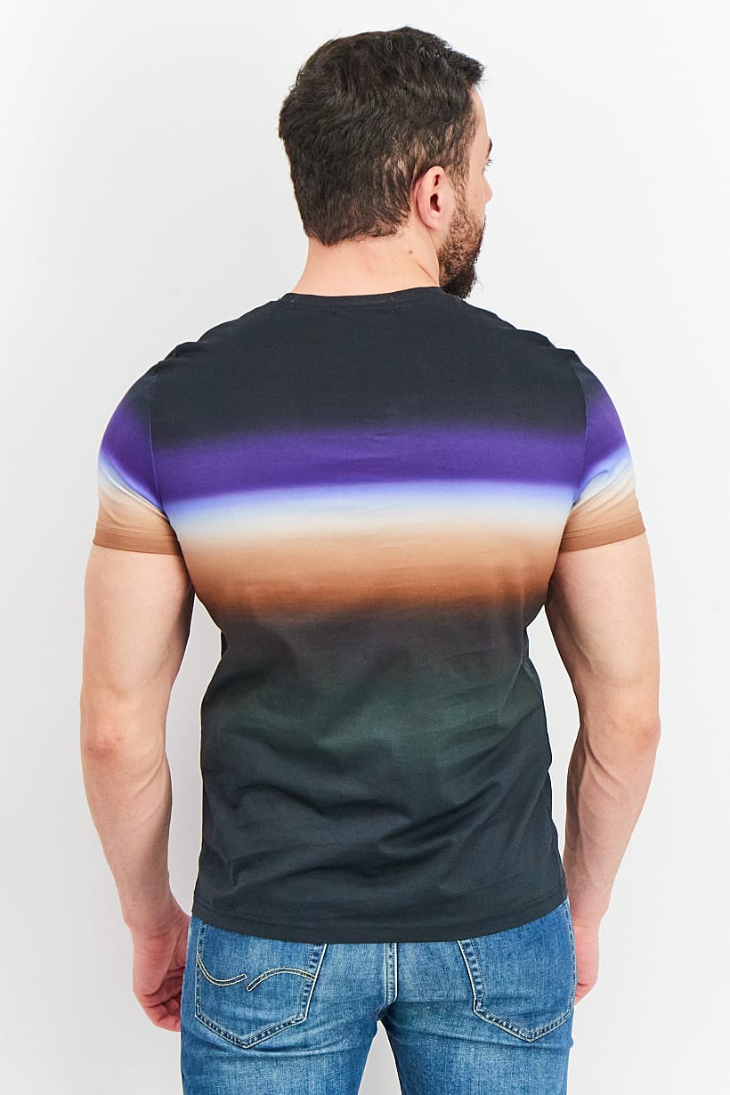 | descriptionOriginal | Care : Machine washable, Fit : Regular fit, Size shown : International, Sleeve Length : Short Sleeve, T-Shirt Style : Crew Neck, Type of Hem : Straight hem , Type of Neckline & Collar : Crew neckline , Disclaimer : Product color may slightly vary due to photographic lighting sources or your monitor settings., Fabrics : 100% Cotton, Occasion : Casual, Pattern & Print : Ombre, Types of Closures : Pullover, Color Family : Black, |