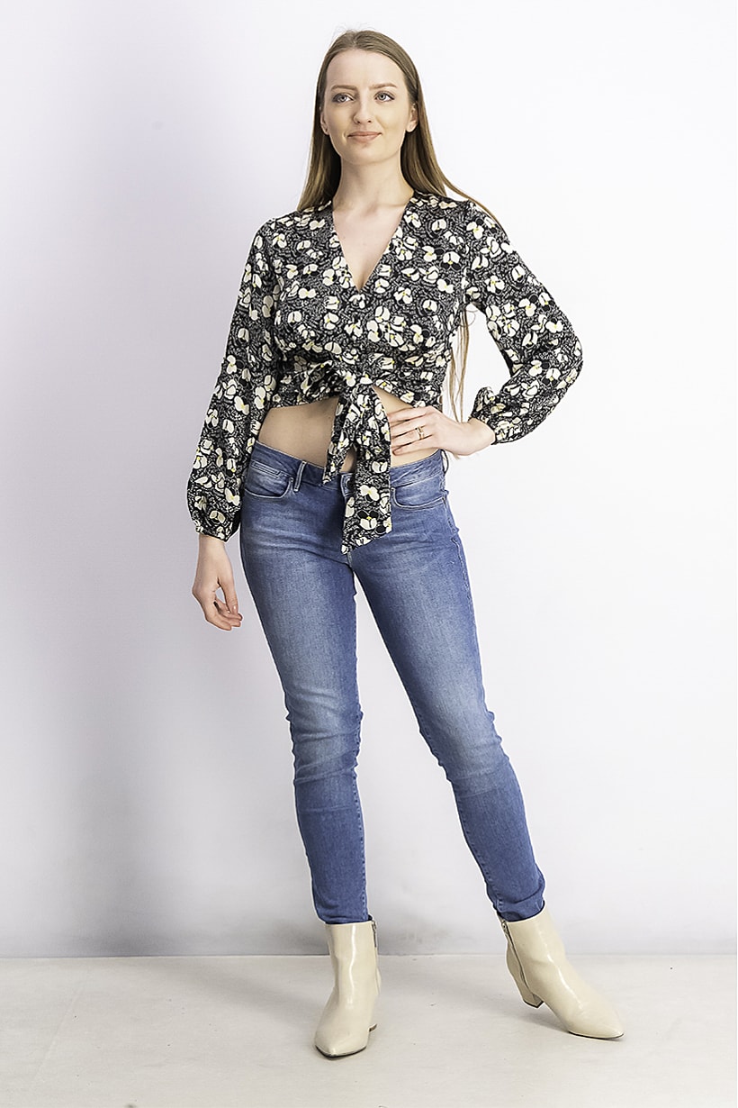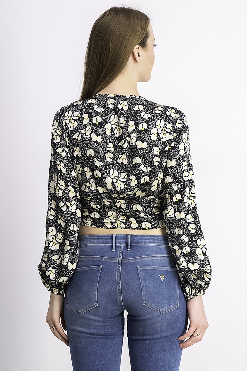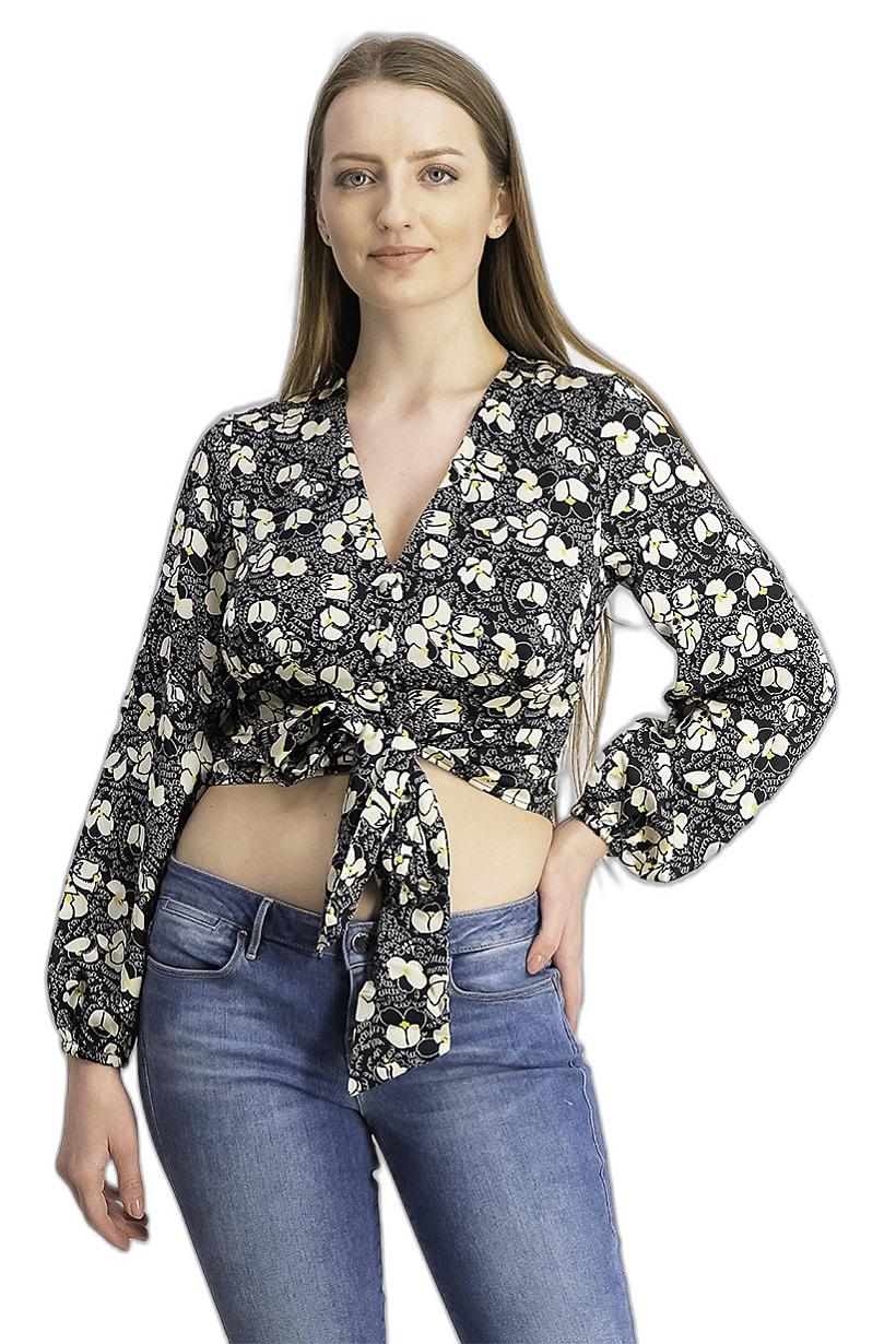 Black Combo Petite Floral Print Blouse with Long Sleeves for Women.