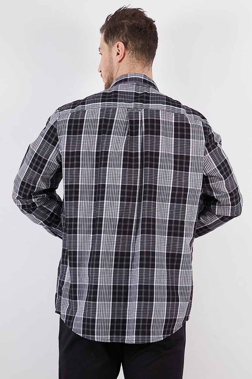 Care : Machine washable, Fit : Easy Fit, Size shown : International, Sleeve Length : Long Sleeve, Types of Hem : Curved hem, Types of Neckline & Collar : Button down collar, Disclaimer : Product color may slightly vary due to photographic lighting sources or your monitor settings., Fabrics : 60% Cotton, 40% Polyester, Occasion : Casual, Pattern & Print : Plaid, Types of Closures : Button, Color Family : Black, White,