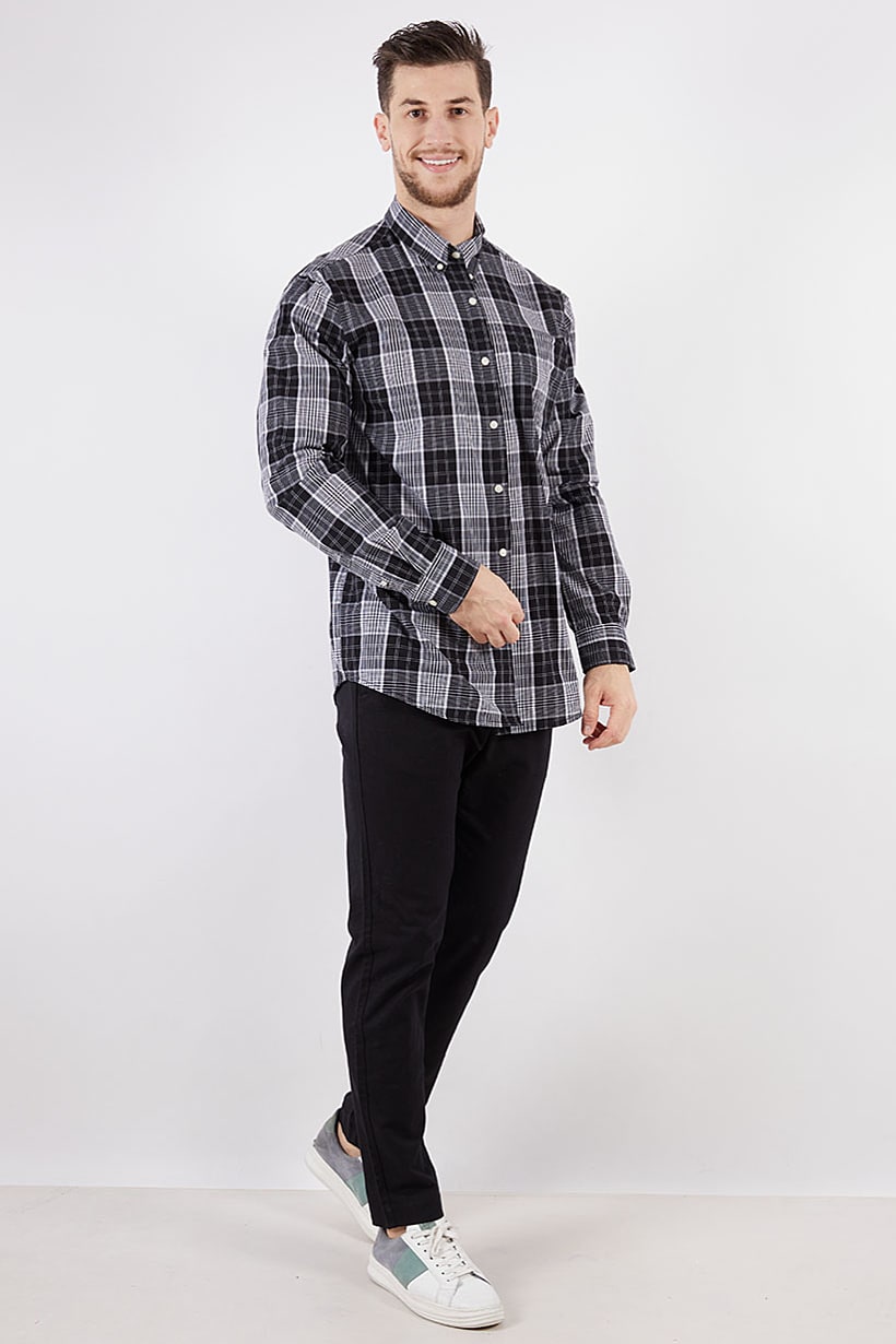 Black Combo Plaid Casual Shirt with Long Sleeves for Men, Easy Fit.