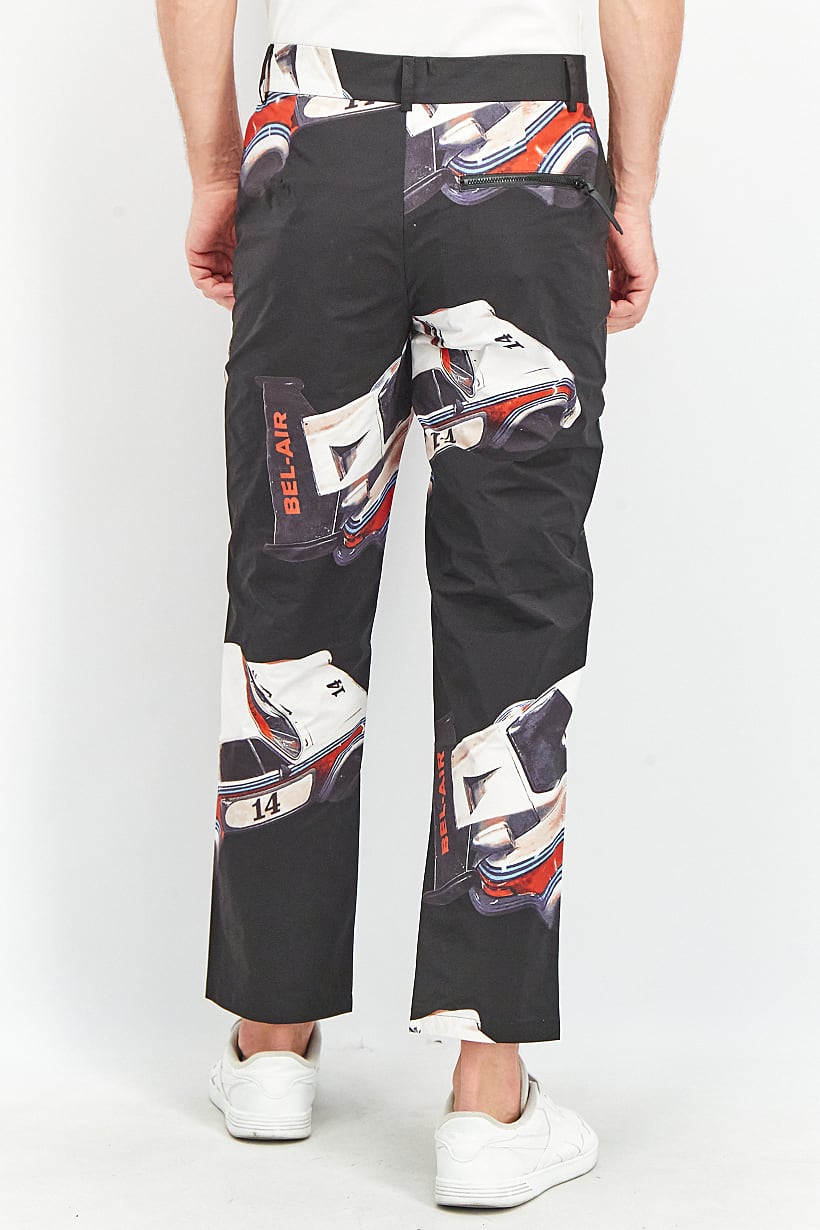 This product is easy to care for as it is machine washable. It has a sportswear fit and is available in international sizes. The fabric is made of 100% polyester and is light in thickness, making it suitable for outdoor sports. Please note that the product color may appear slightly different due to lighting or monitor settings. The track pants feature a graphic print and are part of the black color family.
