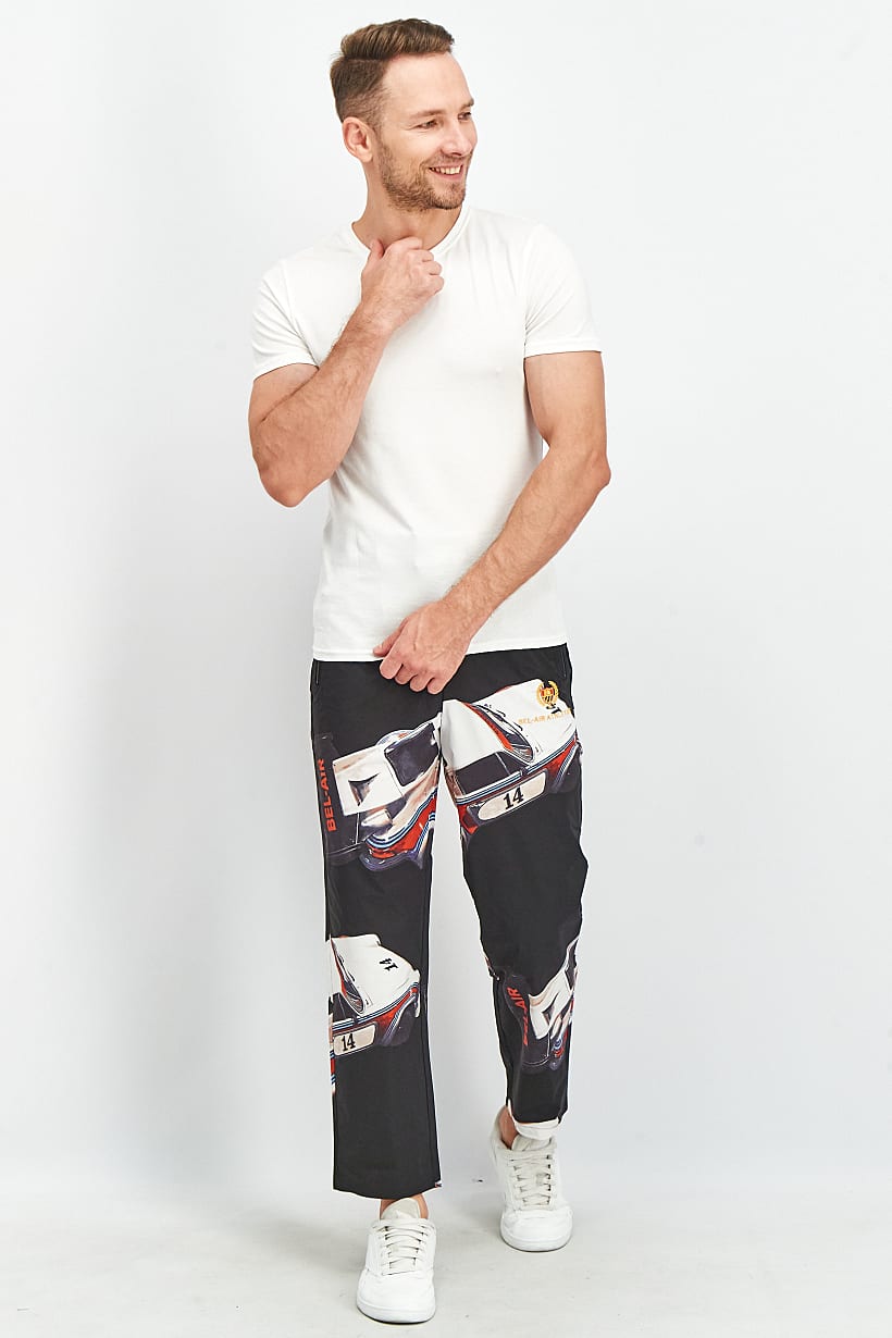 Black Combo Printed Track Pants for Men’s Sportswear.