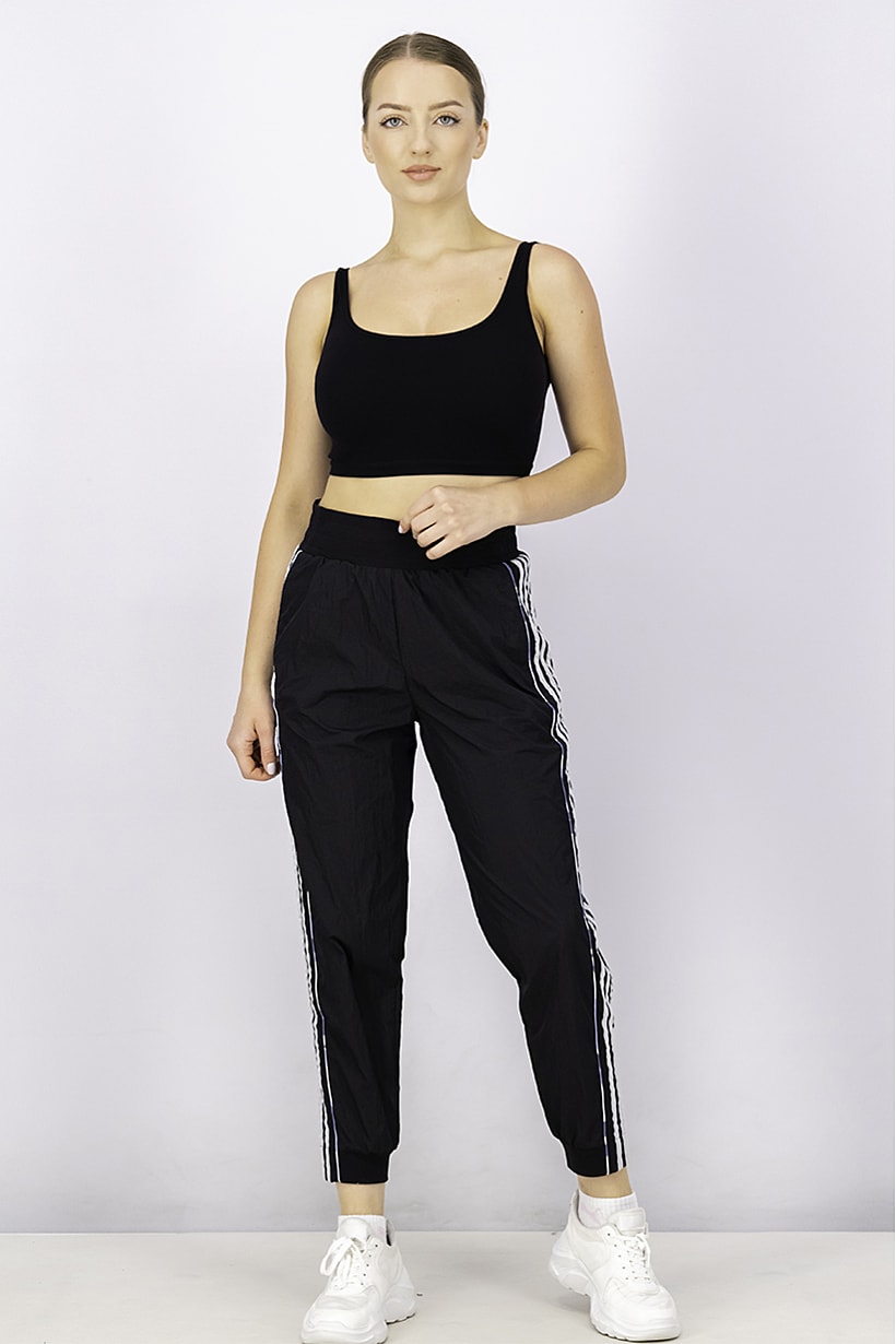 | sub_Categories | Women Clothing, Sportswear, women sportswear fit striped street mix track pants black combo |