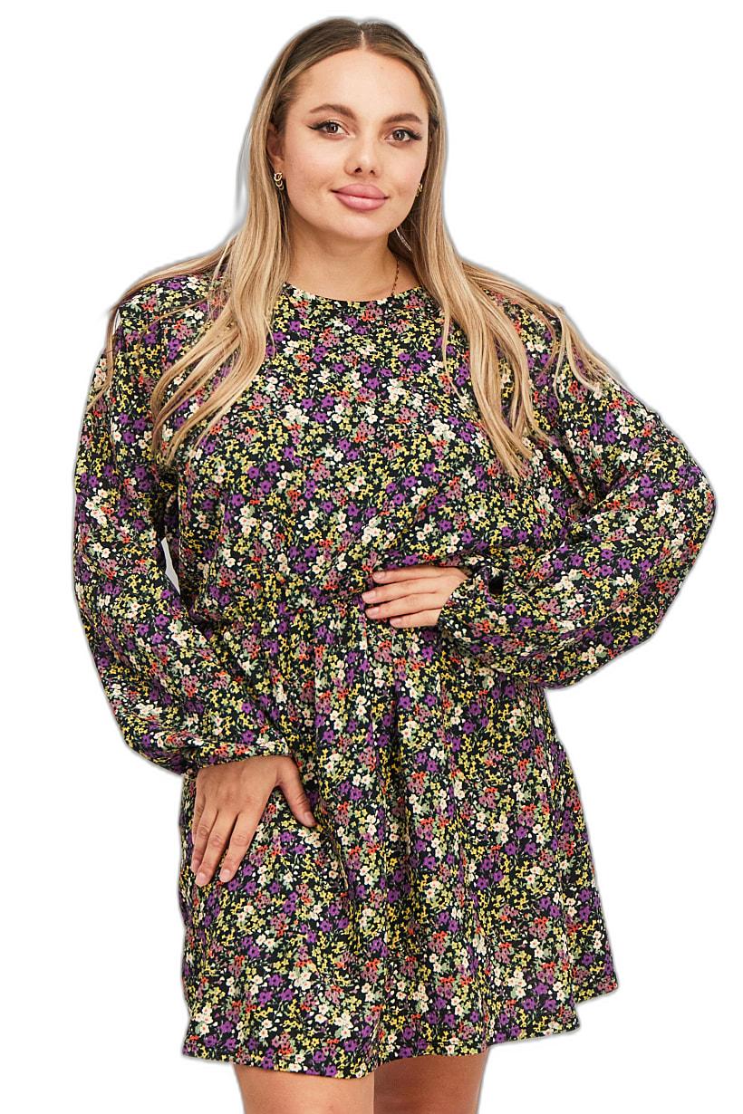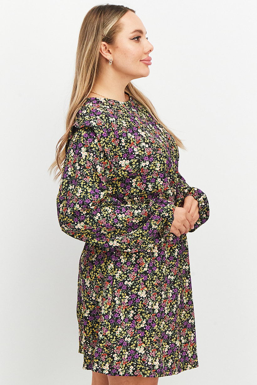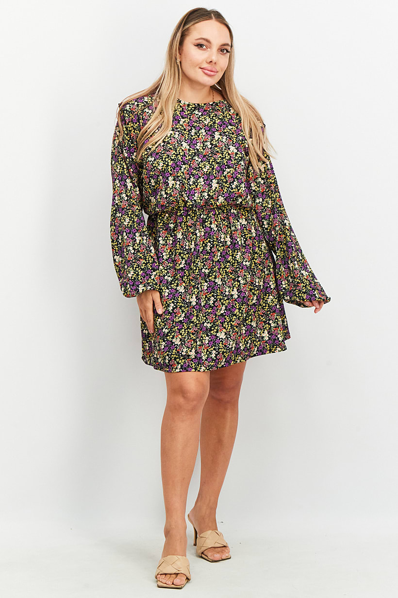 | sub_Categories | Women Clothing, Dresses, women all over print round neck long sleeve casual mini dress black combo |