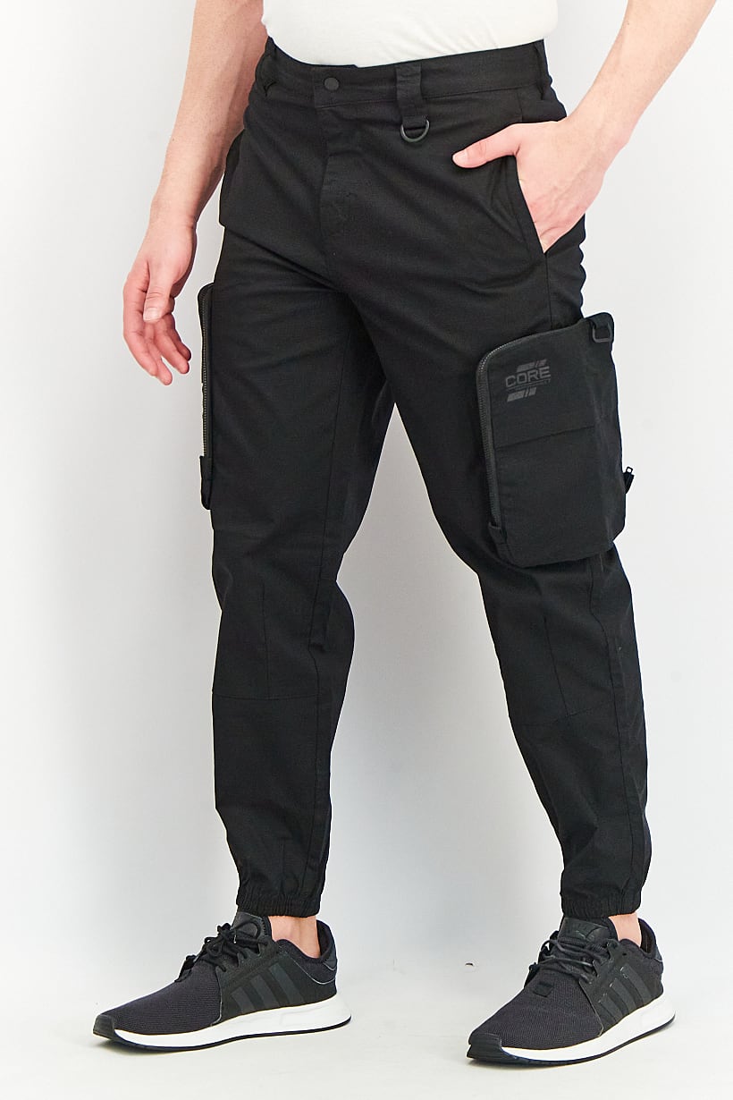 Black Core Performance Cargo Pants for Men’s Sportswear.