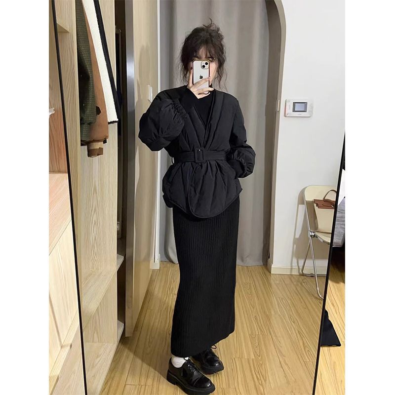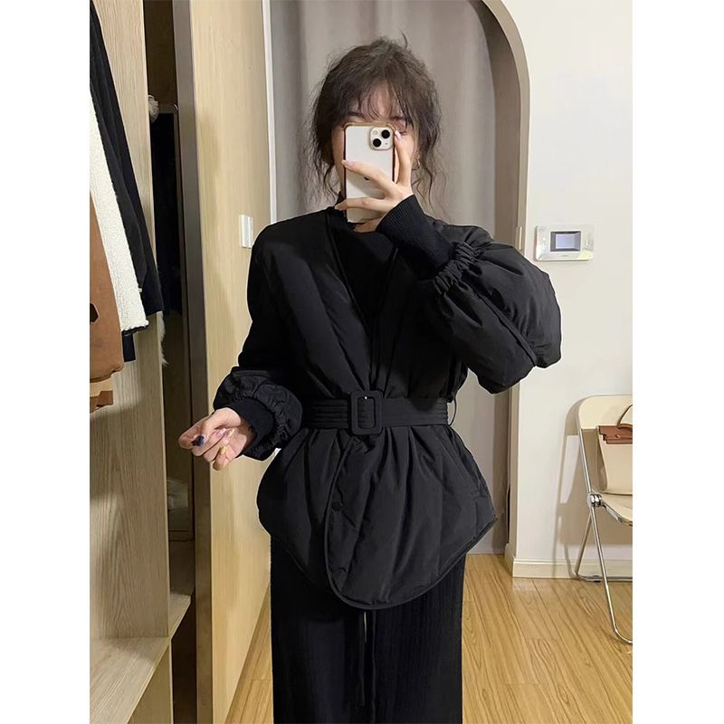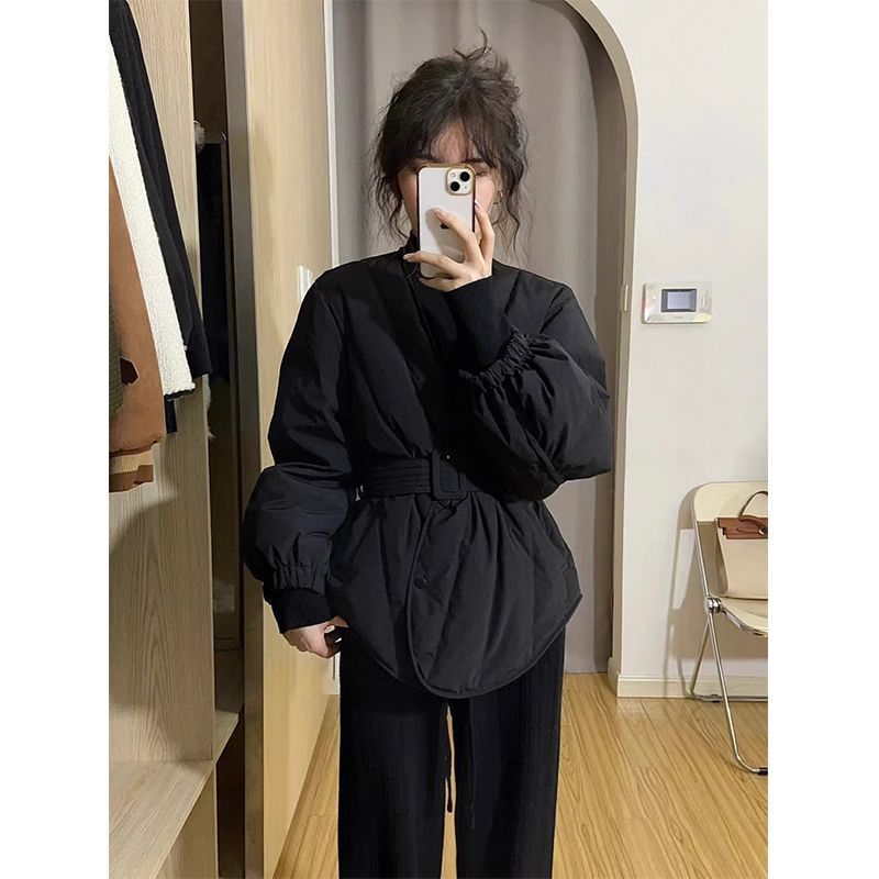 | nameOriginal | Black cotton-padded coat for women 2024 Winter new small V-neck tight waist niche short down cotton-padded coat |