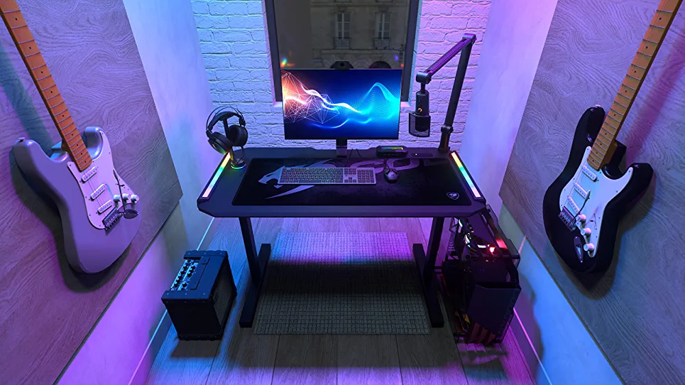 The Cougar Deimus 120 Gaming Desk is the ultimate gaming setup for serious gamers. With its dual-sided RGB lighting, you can customize the look of your desk to match your gaming setup. The desk also features I/O ports, allowing you to easily connect your gaming peripherals. The cable tray keeps your cables organized and out of the way, while the anti-scratch frosted surface ensures that your desk stays looking new for years to come. The black finish gives the desk a sleek and modern look that will complement any gaming room. Whether you’re a professional gamer or just starting out, the Cougar Deimus 120 Gaming Desk is the perfect addition to your gaming setup.