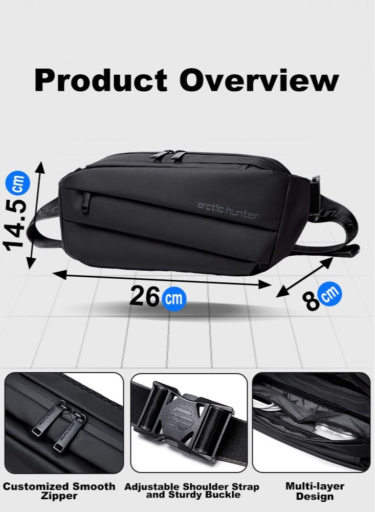 Made from high-quality materials, this bag is built to last. It’s water-resistant, durable, and easy to clean, making it the perfect choice for outdoor activities. Whether you’re hitting the gym, going for a run, or traveling to a new destination, the Crossbody Waist Belt Bag Chest Bag Sling Bag has got you covered. Order yours today and experience the ultimate in convenience and style!