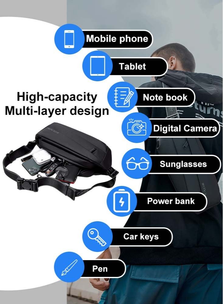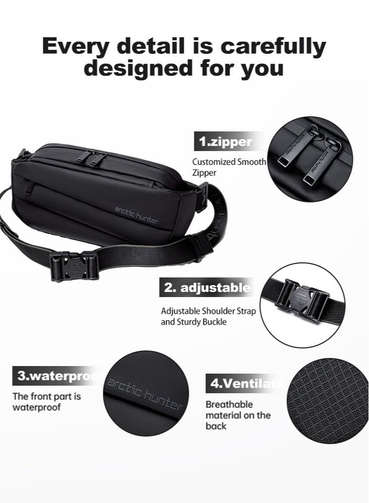 Introducing the Crossbody Waist Belt Bag Chest Bag Sling Bag, the ultimate accessory for sports, workouts, traveling, running, hiking, and more! This versatile bag is designed to keep your essentials close at hand while you’re on the go. With its sleek black design, it’s perfect for both men and women.