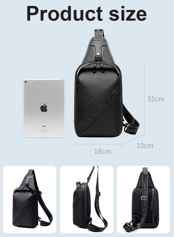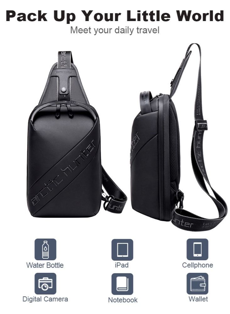 Introducing our Lightweight Chest Sling Bag, the perfect accessory for business travel and everyday use. This versatile crossbody bag is designed to fit all your essentials, including your tablet, phone, money, and wallet. The sleek black design is suitable for both men and women, making it a great gift for anyone on the go. The bag is made from high-quality materials, ensuring durability and longevity. The adjustable strap allows for a comfortable fit, while the chest sling design keeps your belongings secure and easily accessible. Whether you’re commuting to work or exploring a new city, our Lightweight Chest Sling Bag is the perfect companion for all your adventures.