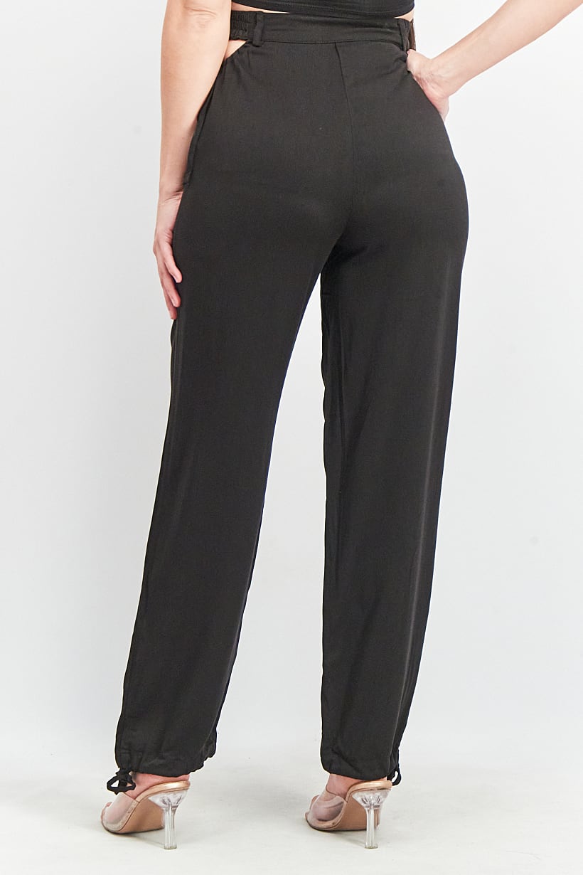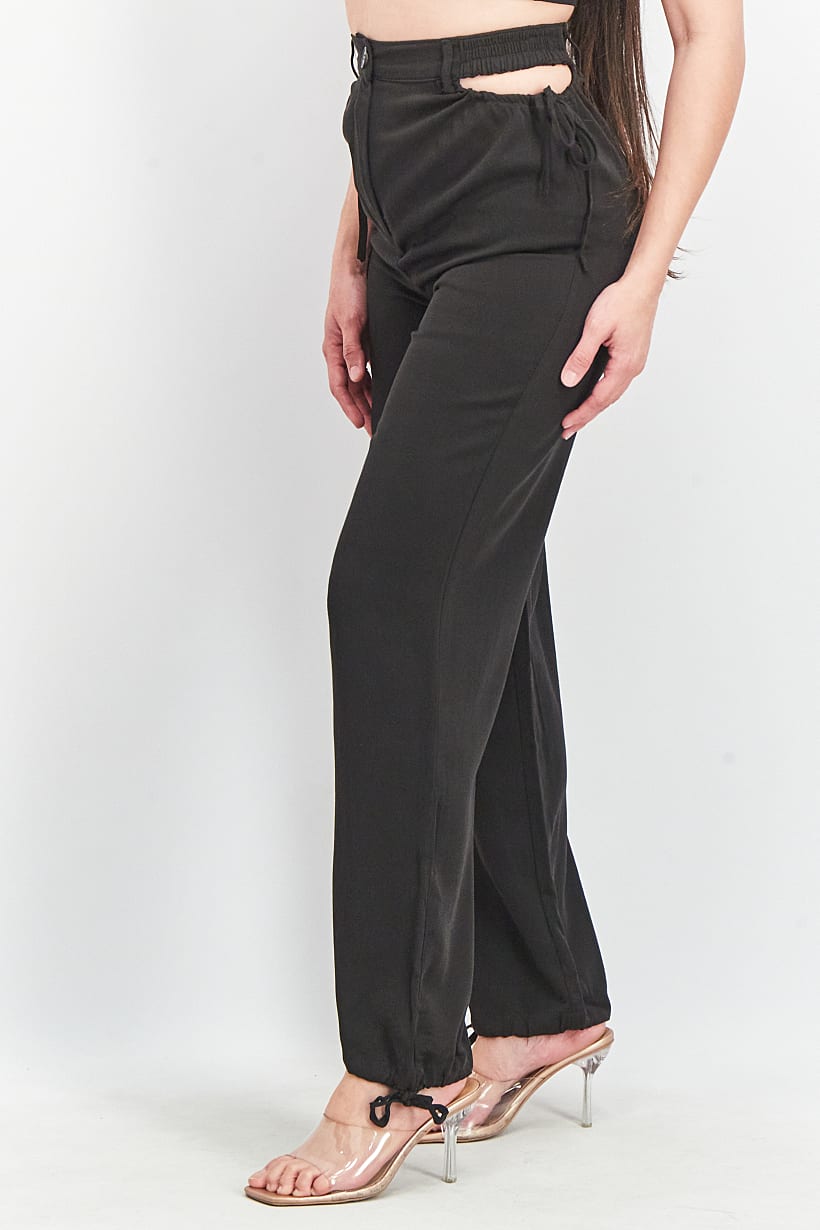 | sub_Categories | Women Clothing, Pants, women regular leg plain waistband cutout pants black |