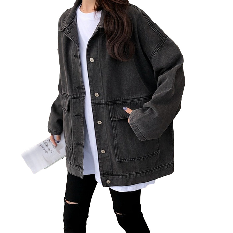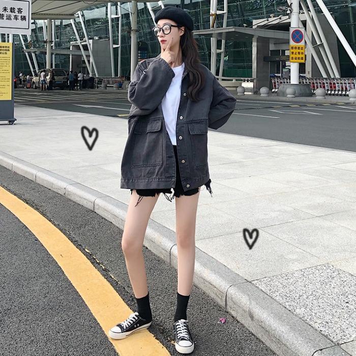 | nameOriginal | Black Denim Jacket Women's Autumn and Winter 2021 New Korean-style Loose bf All-match Early Autumn Retro Hong Kong Style ins Trendy |