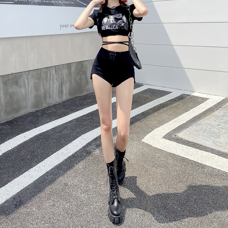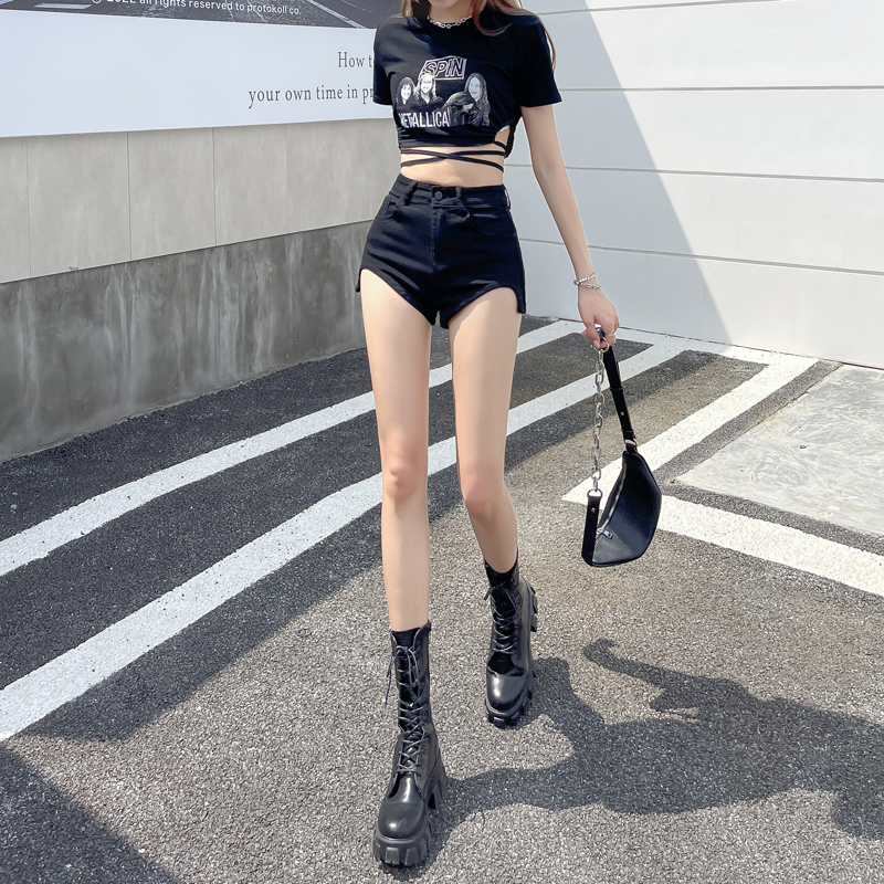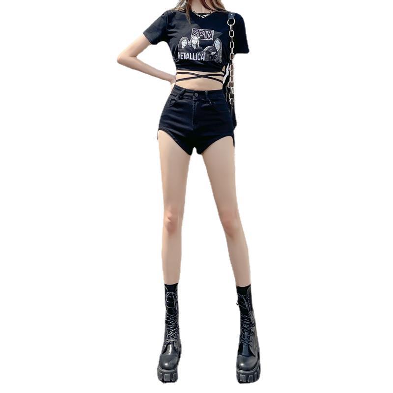 Black Denim Shorts Women's 2024 New Summer Waist Tight Slimming American Style Hot Girl A- line Hot Pants