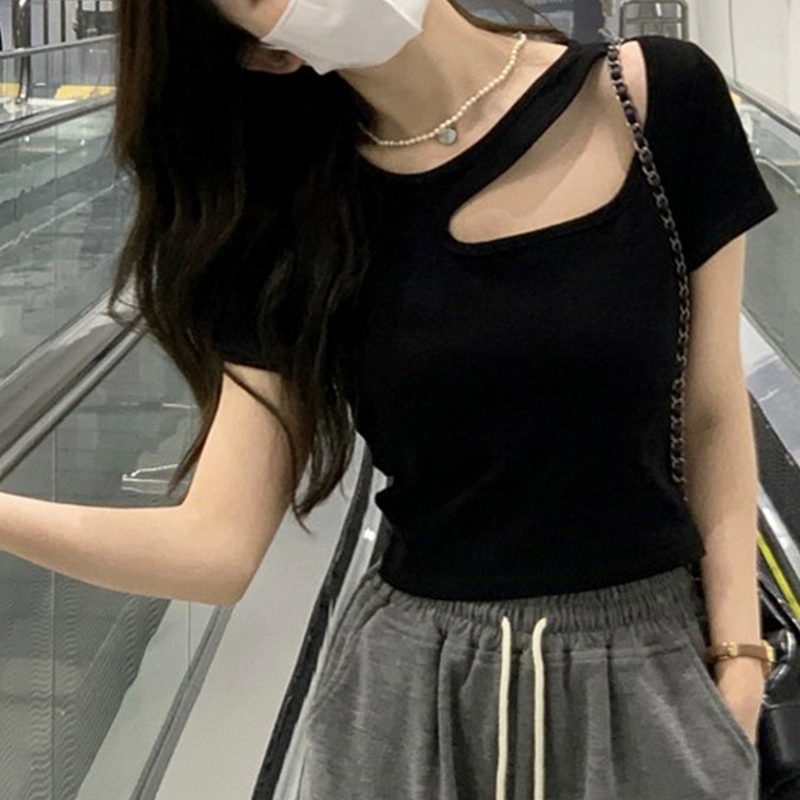 | nameOriginal | Black design hollow short-sleeved top ins T-shirt |