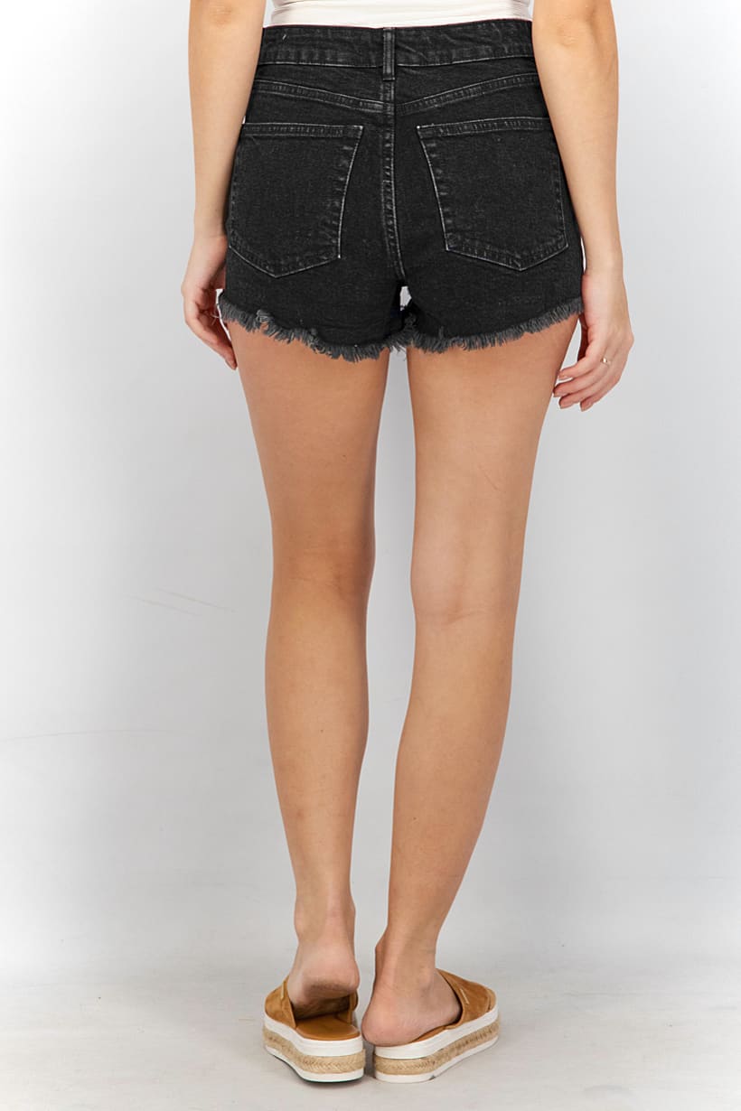 | nameOriginal | Women Distressed Hem Denim Short, Black |