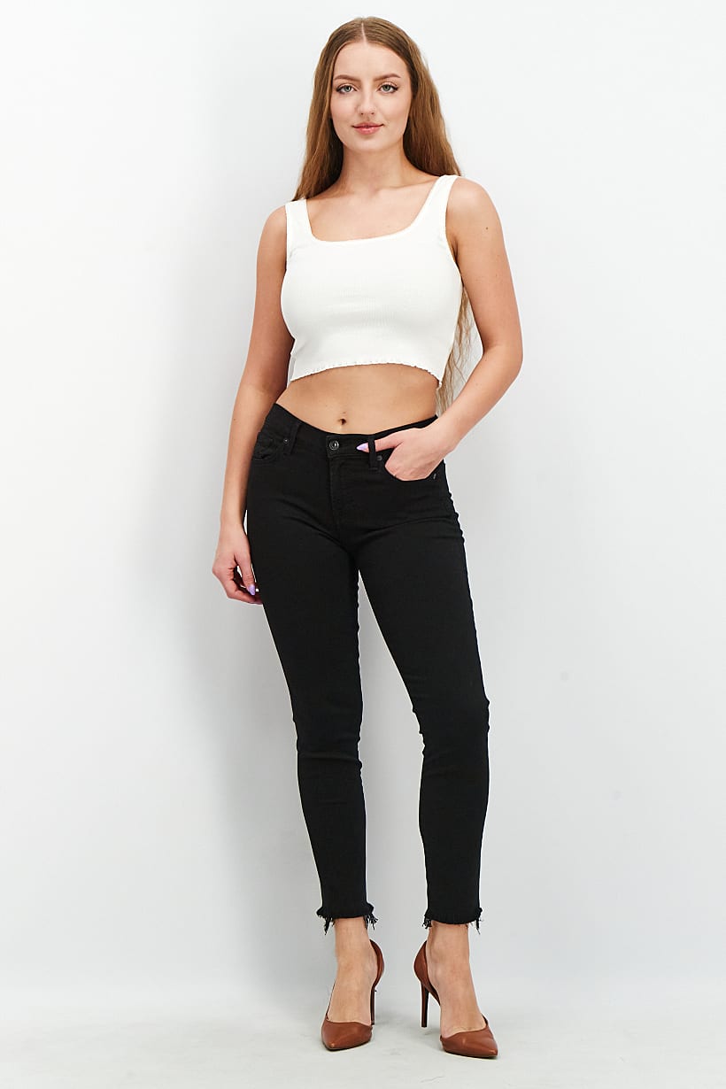 | sub_Categories | Women Clothing, Jeans, women regular fit distress hem solid stretchable jeans black |