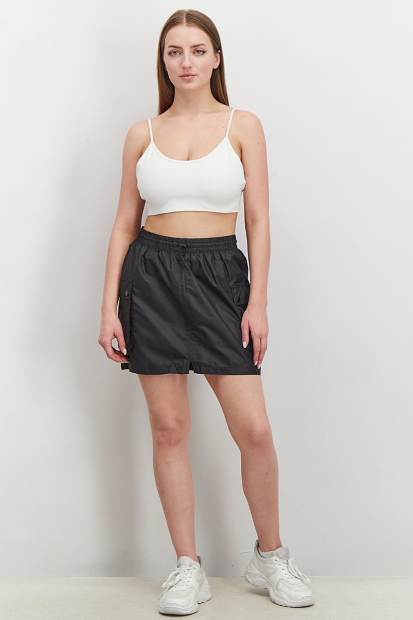 | nameOriginal | Women Drawstring Cargo Skirt, Black |