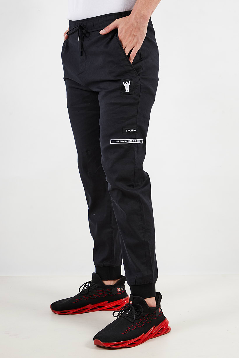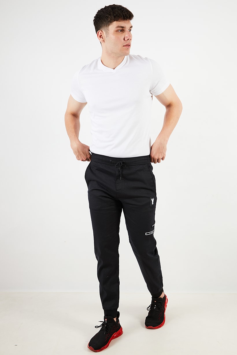 Black Drawstring Jogger Pants for Men with Regular Fit.