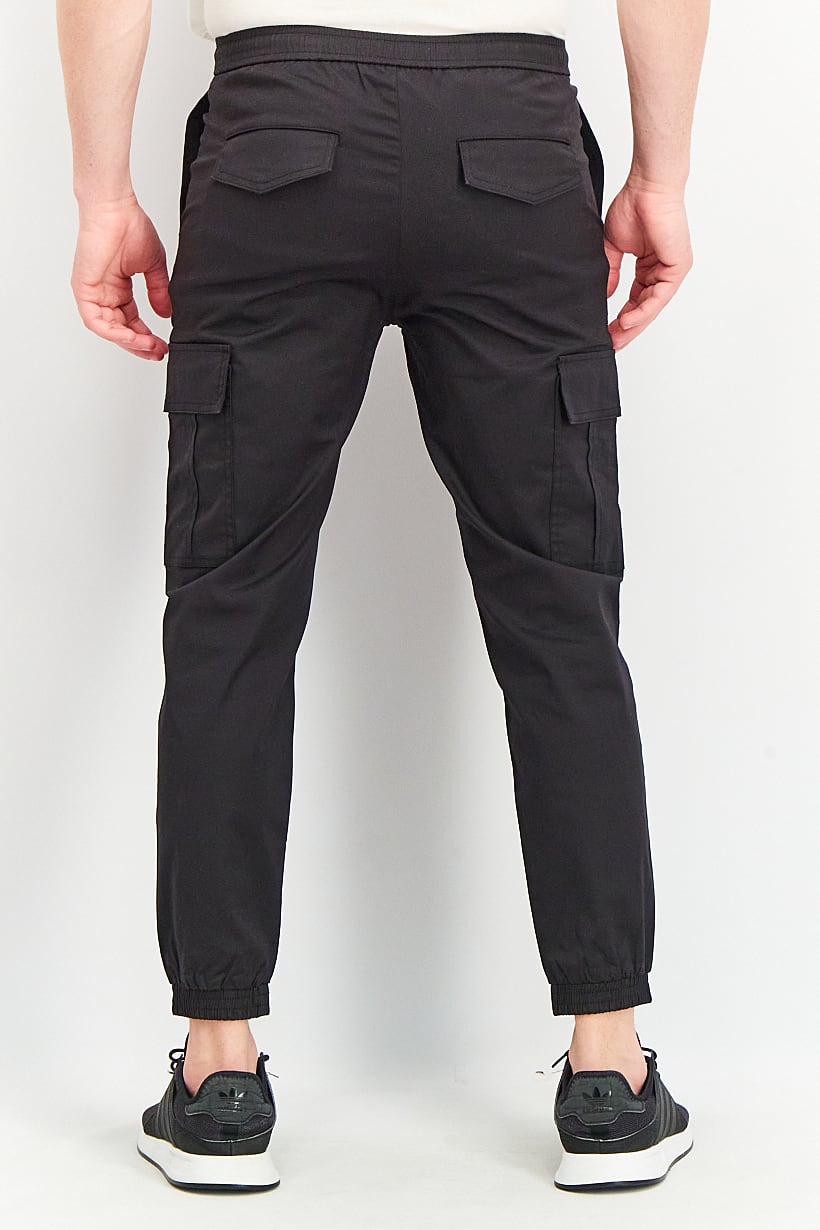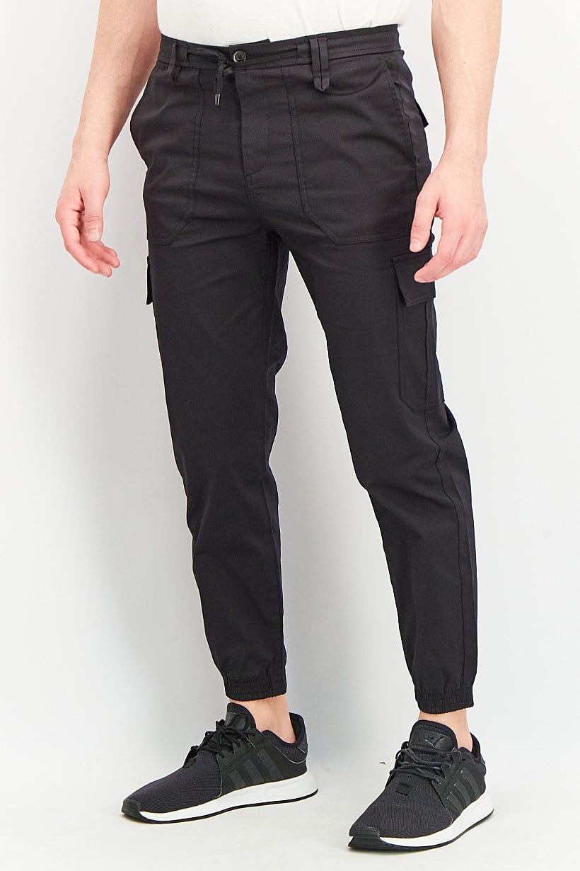 | nameOriginal | Men Regular Fit Solid Cargo Pocket Drawstring Jogger Pants, Black |