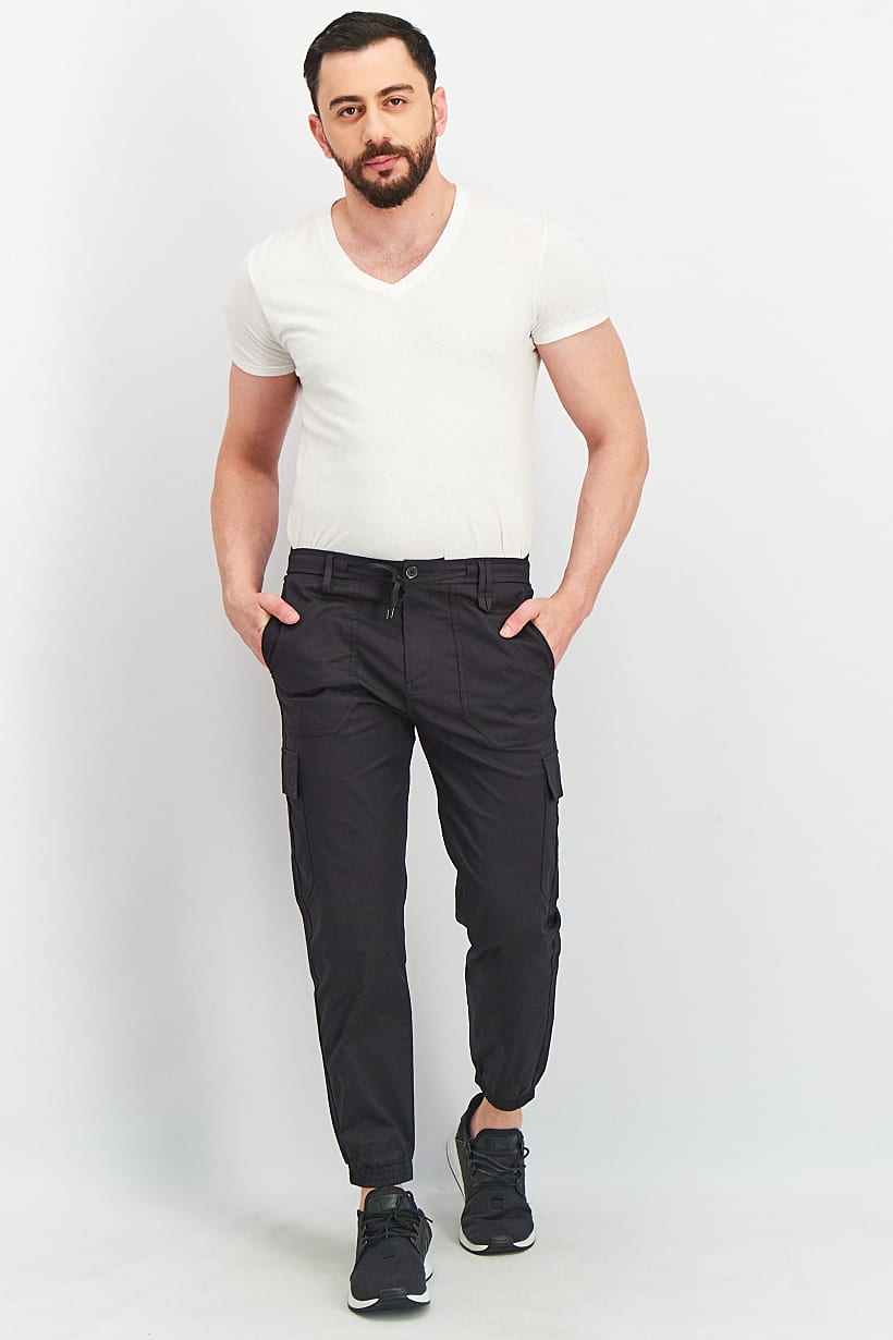 | sub_Categories | Men Clothing, Pants, men regular fit solid cargo pocket drawstring jogger pants black |