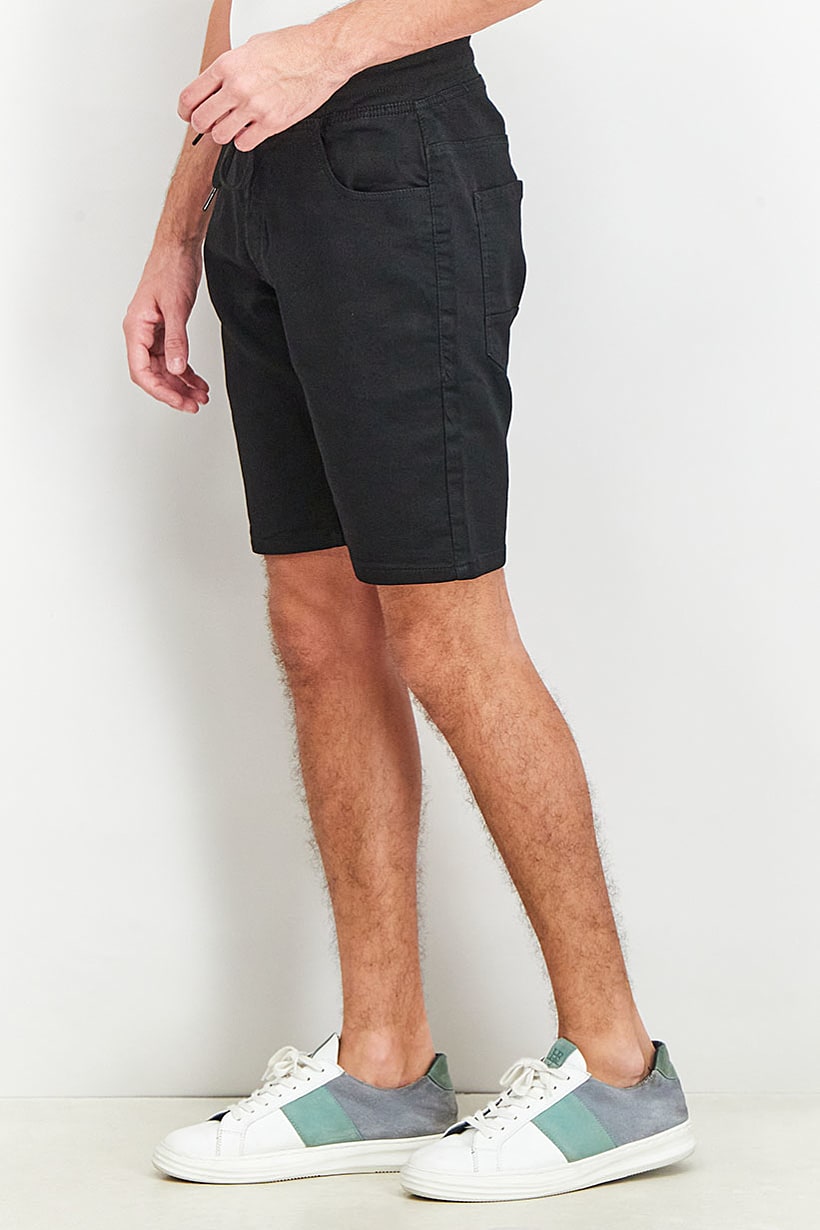Men Clothing, Shorts, men plain five pocket drawstring jogger shorts black