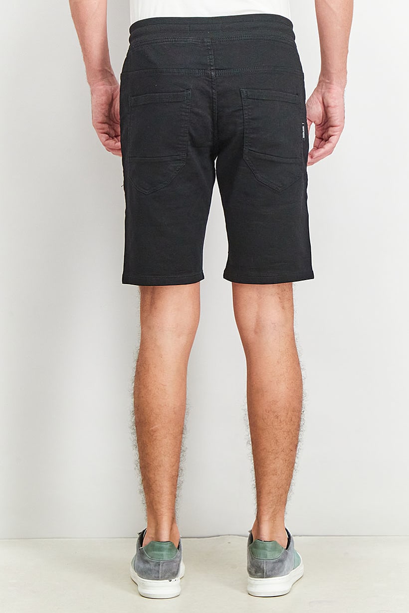 Black Drawstring Jogger Shorts for Men with Five Pockets.