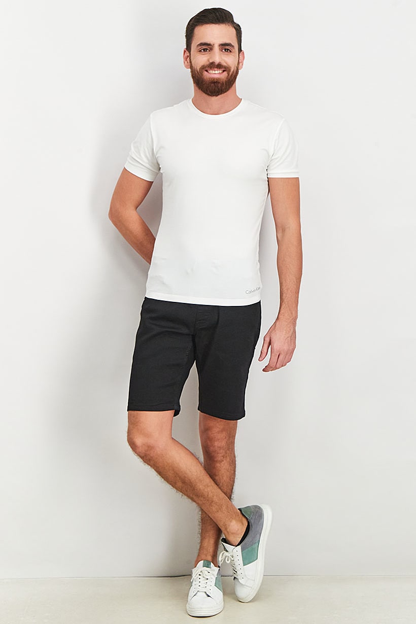 Care : Machine washable, Fit : Regular fit, No of pockets : 5, Size shown : Inches, Stretch Type : Stretchable, Type of Short : Basic short, Bottom Closure : Drawstring, Disclaimer : Product color may slightly vary due to photographic lighting sources or your monitor settings., Fabrics : 66% Cotton, 26% Polyester, 7% Viscose, 1% Elastane, Occasion : Casual, Pattern & Print : Plain/Solid, Color Family : Black,