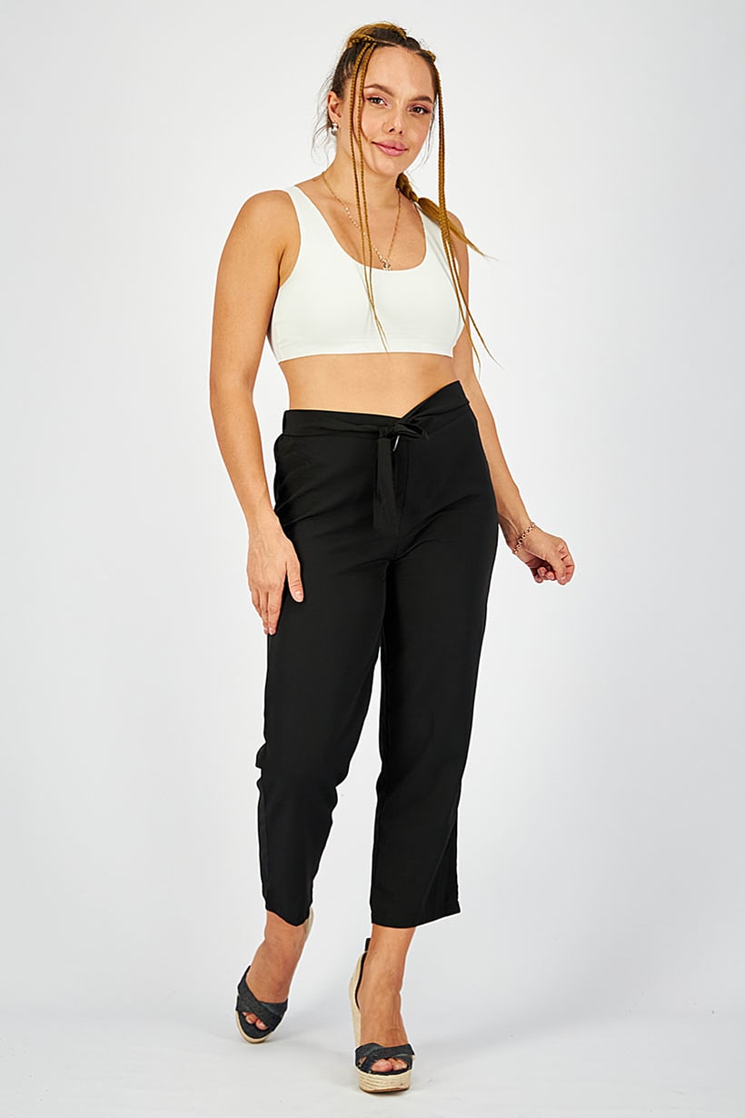 Black Drawstring Pants for Women with Regular Fit.