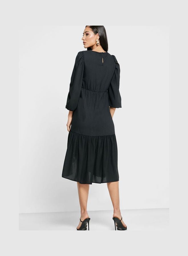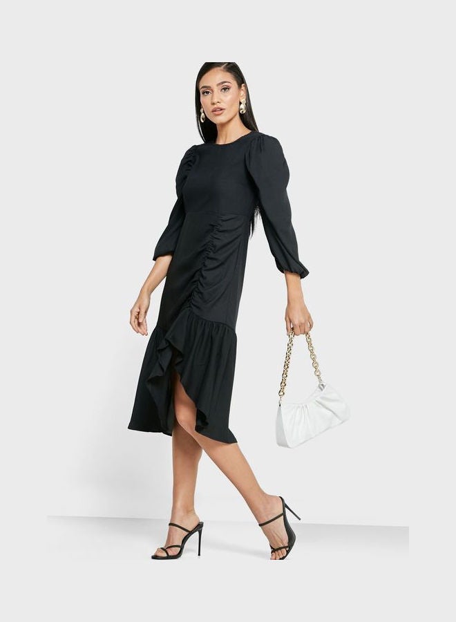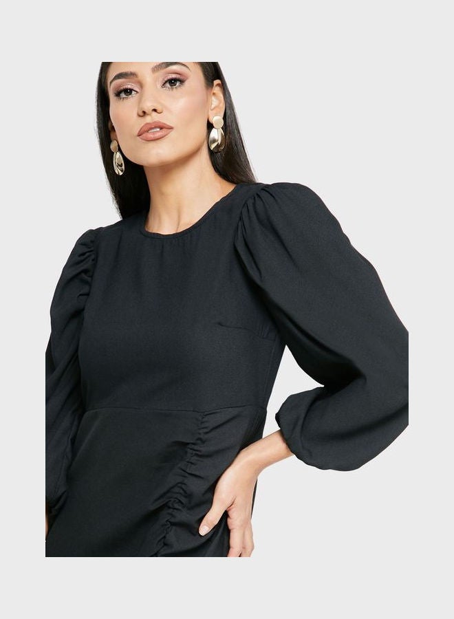 | nameOriginal | Side Ruched Volume Sleeve Dress Black |