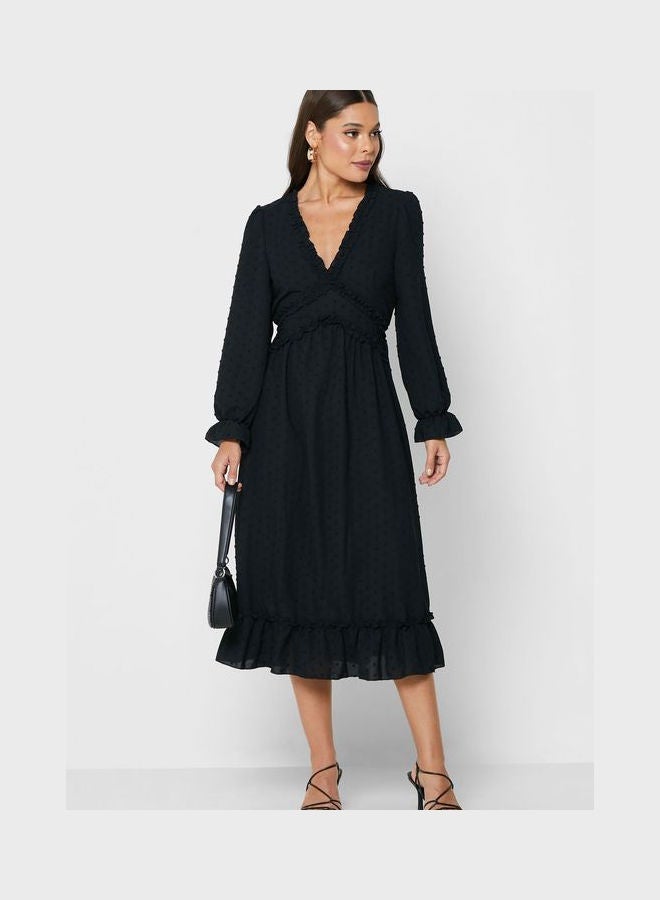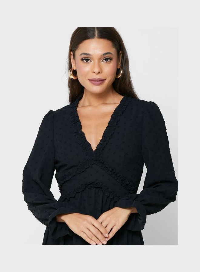| nameOriginal | V-Neck Ruffled End Dress Black |