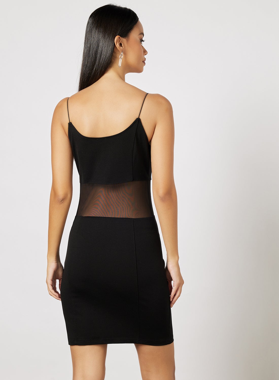 This product features a soft and cozy blend of polyamide fabric that ensures maximum comfort. It comes with a scoop neck and slim shoulder straps that provide a sleek and stylish look. The dress also features a sheer panel detail that adds a touch of elegance to the overall design. With its mini length and regular fit, this dress is perfect for any occasion. To ensure its longevity, please follow the care label instructions when washing.