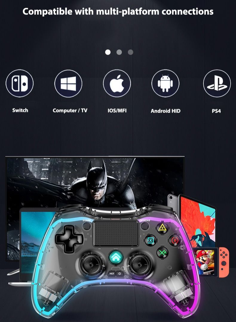 | nameOriginal | DualShock 4 Wireless Controller Bluetooth For Sony PlayStation 4 Multiple Connections Compatible With PS4 PS5 Switch PC Android IOS And Other Platforms RGB Ambient Light Controller Black |